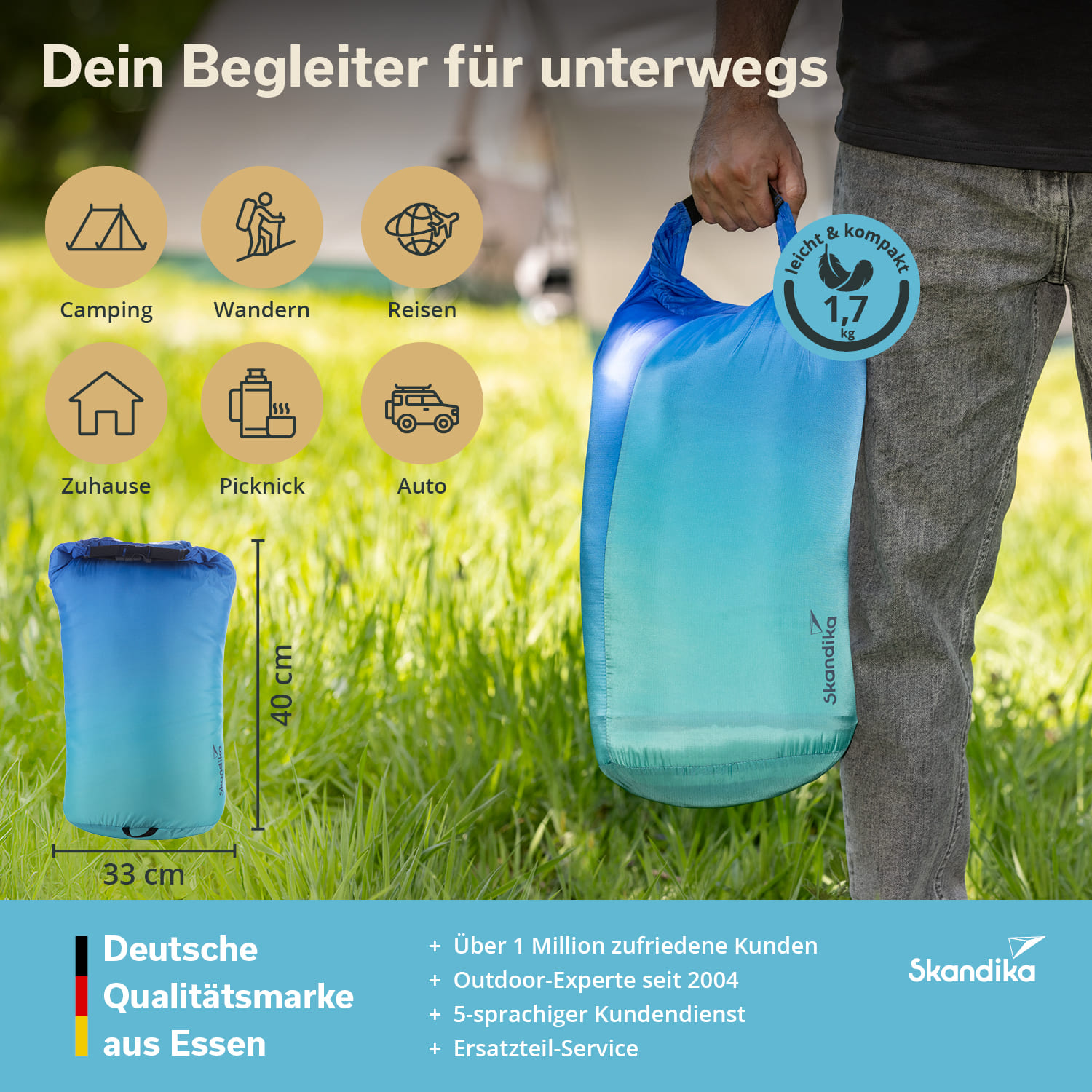 - Größe 200 × 135 cm (als Kissen 47 × 44 cm) / Packmaß 40 × 33 × 9 cm / Gewicht 1,7 kg