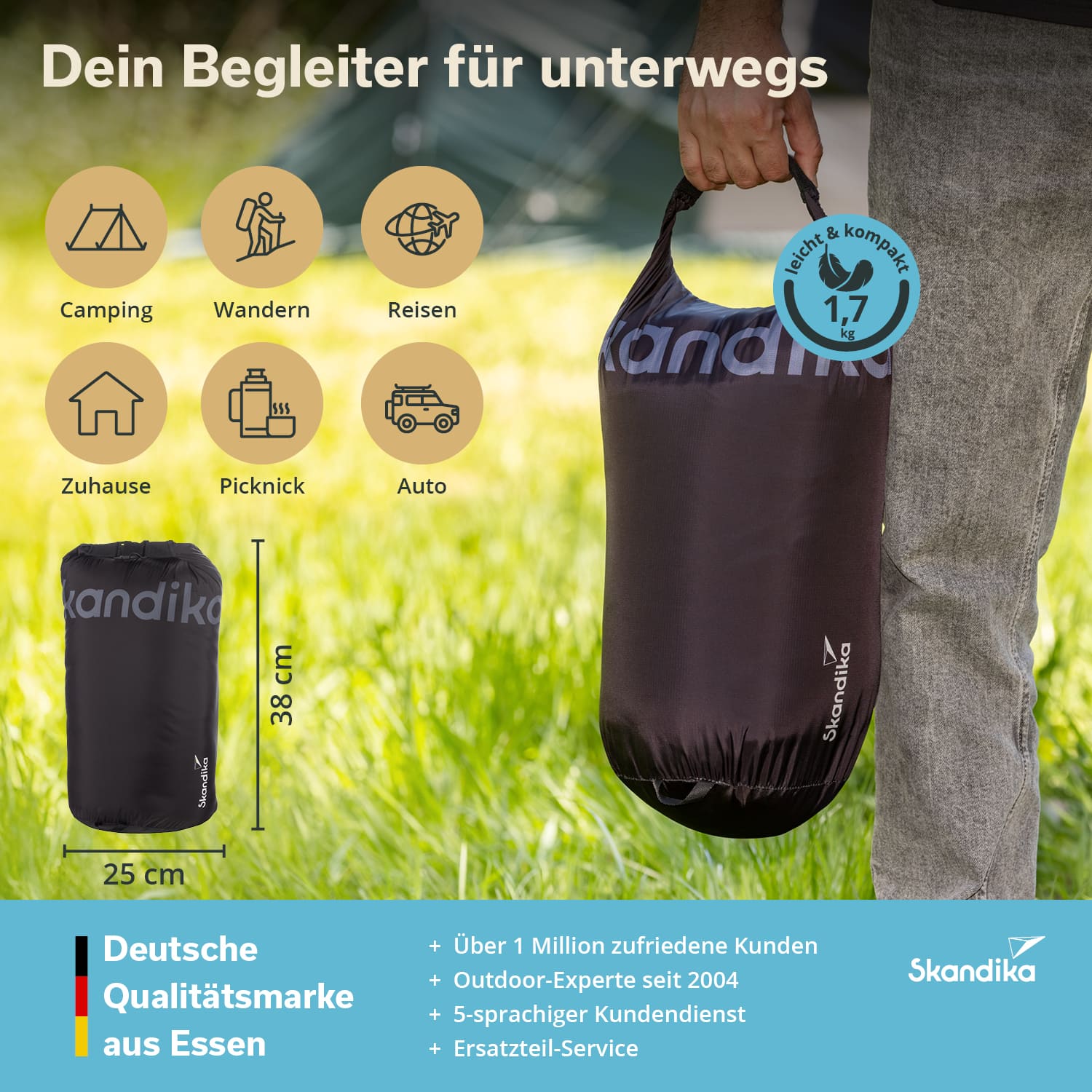 - Größe 200 × 135 cm (als Kissen 47 × 44 cm) / Packmaß 39 × 26 × 8 cm / Gewicht 1,4 kg