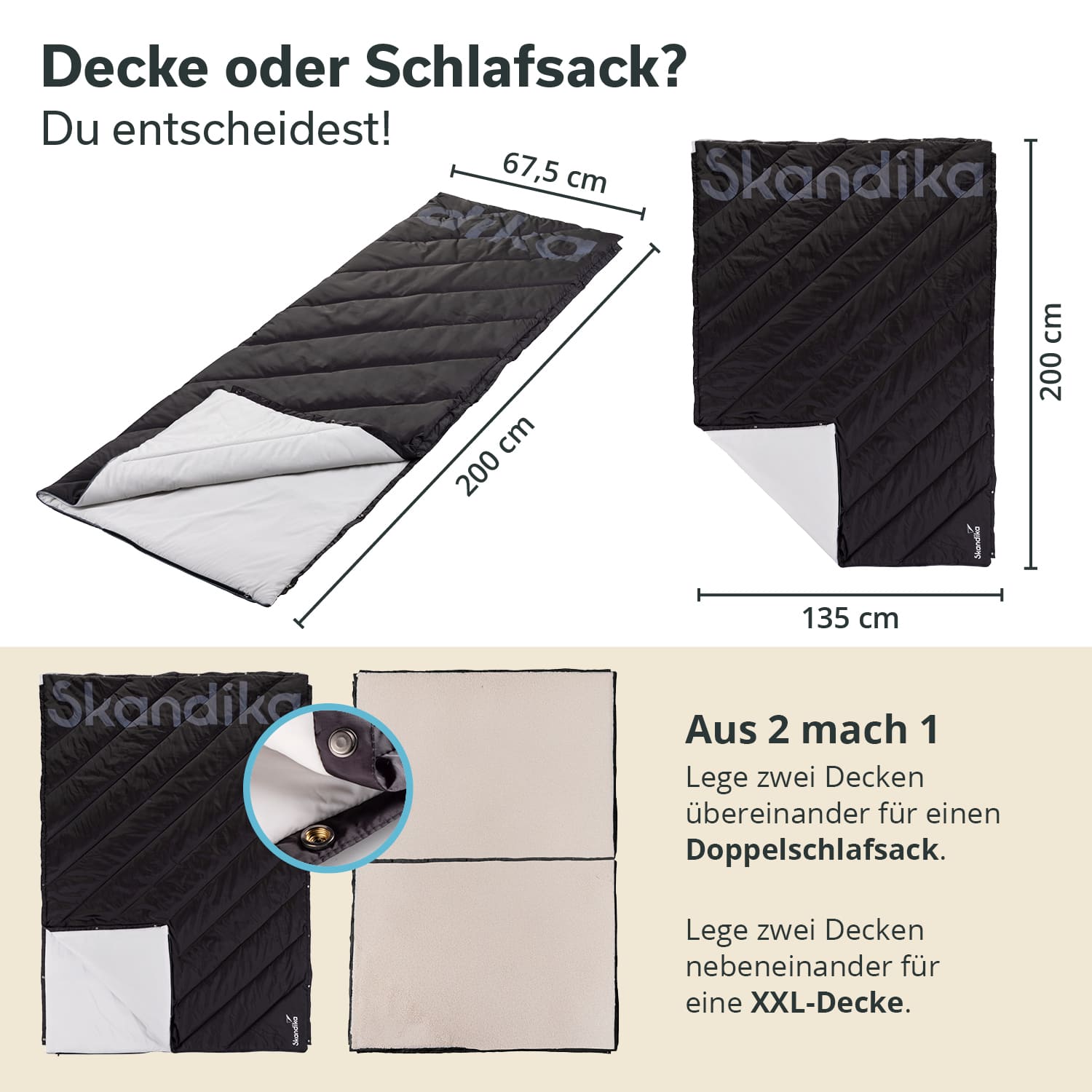 - 2 Decken übereinander geknöpft für einen gemütlichen Doppelschlafsack für 2 Personen