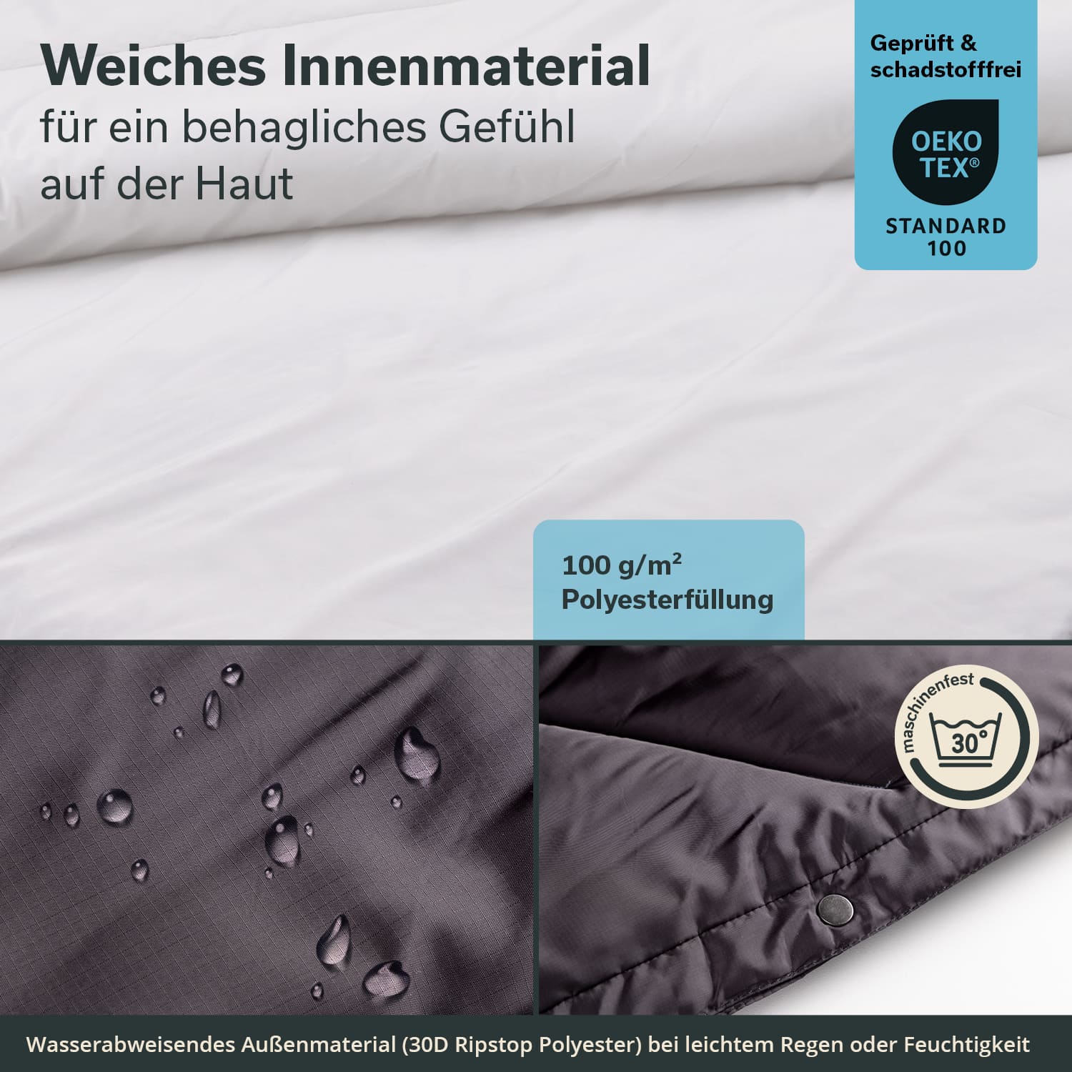 - 4-in-1 Outdoordecke – nutzbar als Decke, Cape, Schlafsack oder Kissen