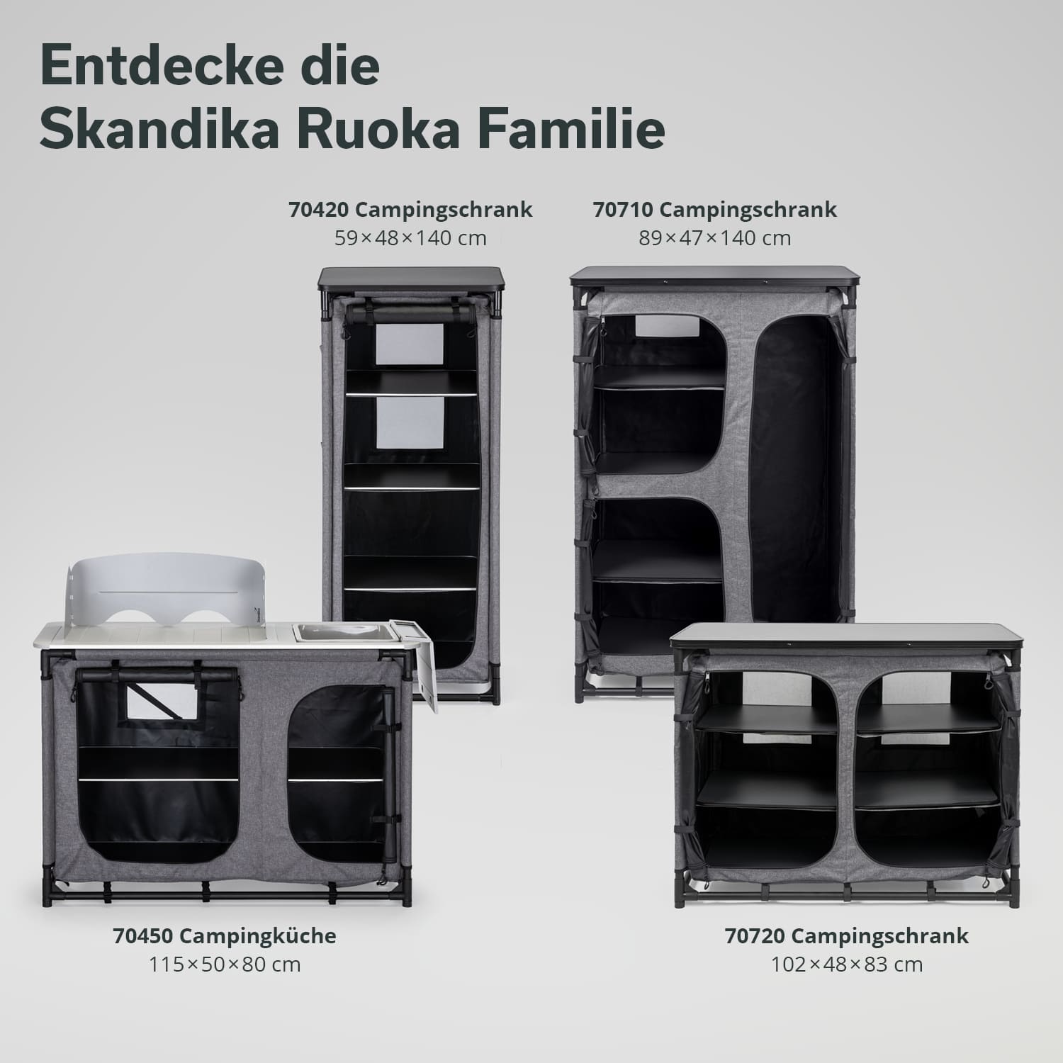 Als Neuzugang der Skandika-Ruoka-Familie bietet dieser vielseitiger Campingschrank viel Stauraum und belegt dabei nur wenig Bodenfläche im Zelt. Er ist beim Camping die perfekte Lösung für alle, die ihre Kleidung ordentlich verstauen, die Campingküche organisieren oder Lebensmittel übersichtlich lagern möchten. Ob als Campingschrank im Zelt oder als praktische Aufbewahrungsmöglichkeit im Gästezimmer zu Hause – der Ruoka passt sich flexibel den individuellen Bedürfnissen an und sorgt für Ordnung auf kleinstem Raum.