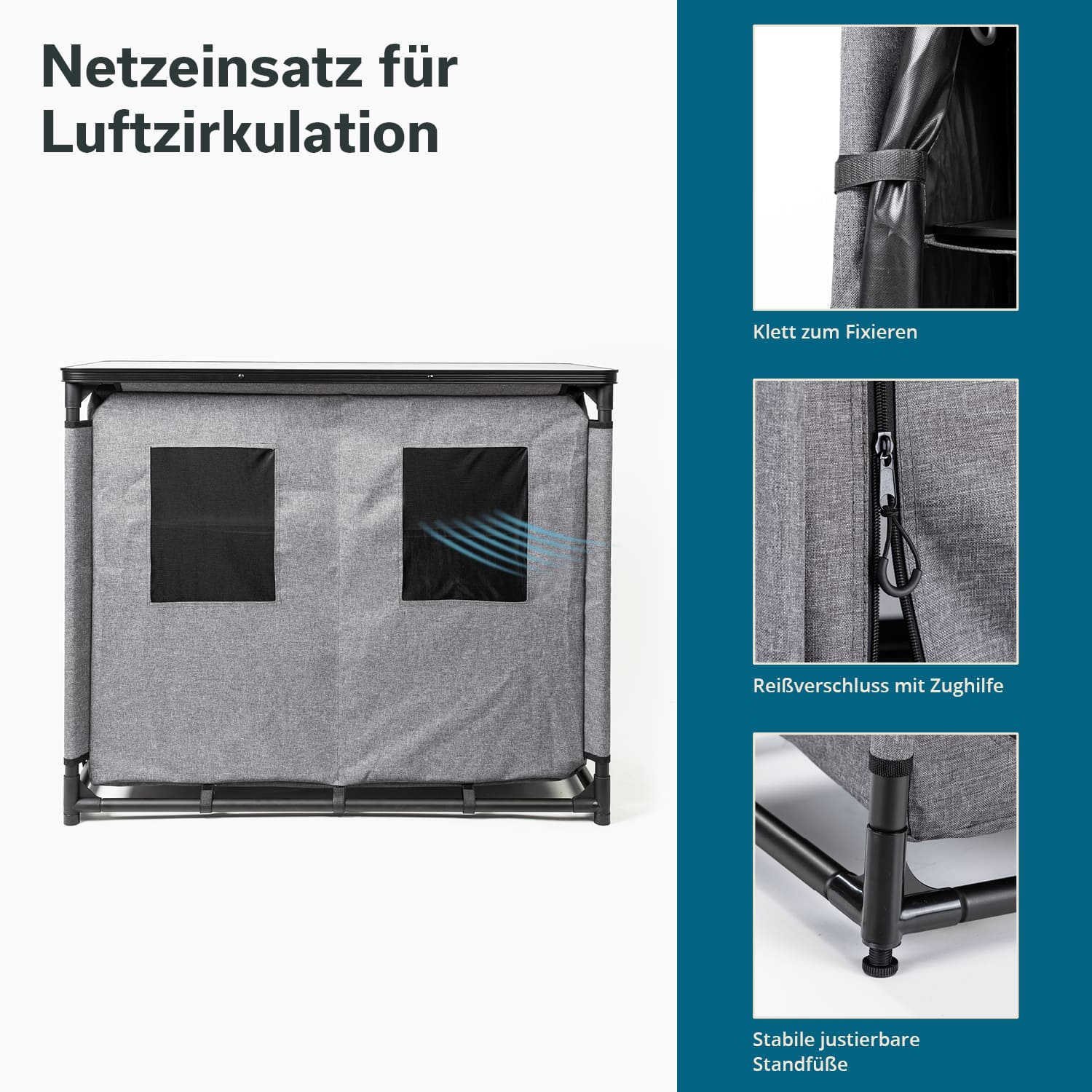 - Vielseitiger Campingschrank für Kleidung, Campingküche oder Vorräte