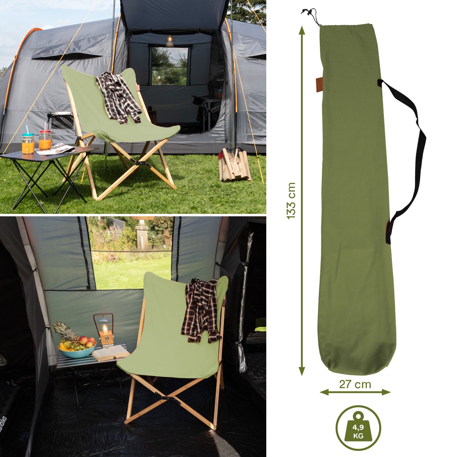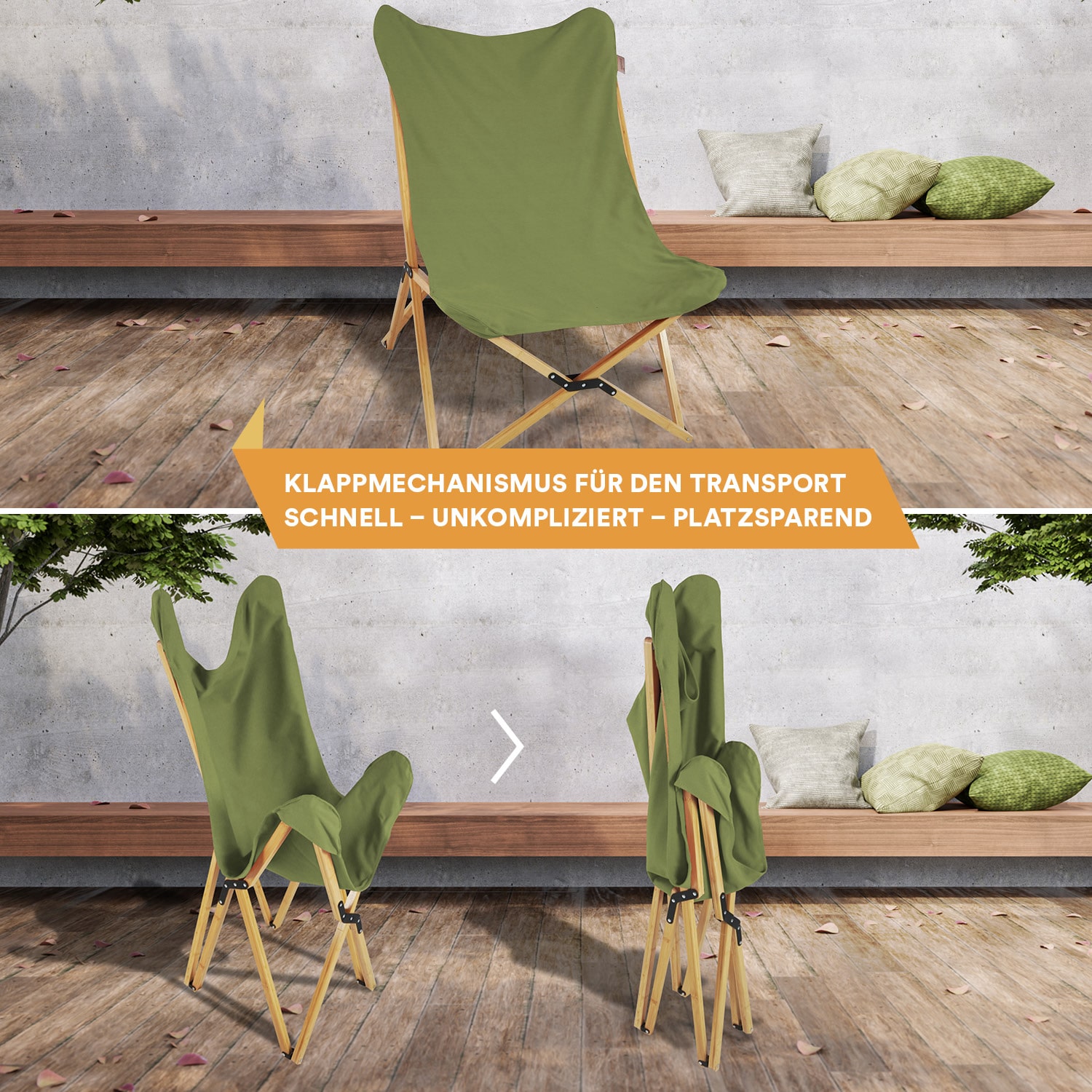 Die Tragetasche dient dem einfachen Transport und schützt den Stuhl auch beim Nichtgebrauch, wenn er im Keller oder in der Garage gelagert wird.