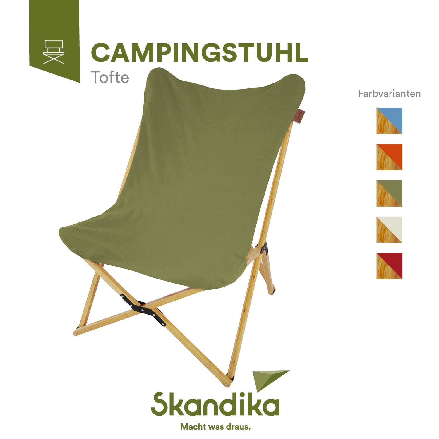 Tofte - Für die ruhigen Momente! Jeder verdient sich zwischendurch eine kleine Pause. Um es besonders gemütlich beim Relaxen im Zelt, am Lagerfeuer oder beim Sonnenbaden zu haben, ist der neue Campingstuhl Tofte genau der Richtige. Durch seine nachhaltigen Materialien wie Bambus und Baumwolle hebt er sich von gewöhnlichen Campingstühlen ab und sticht mit seinem modernen Design direkt ins Auge.