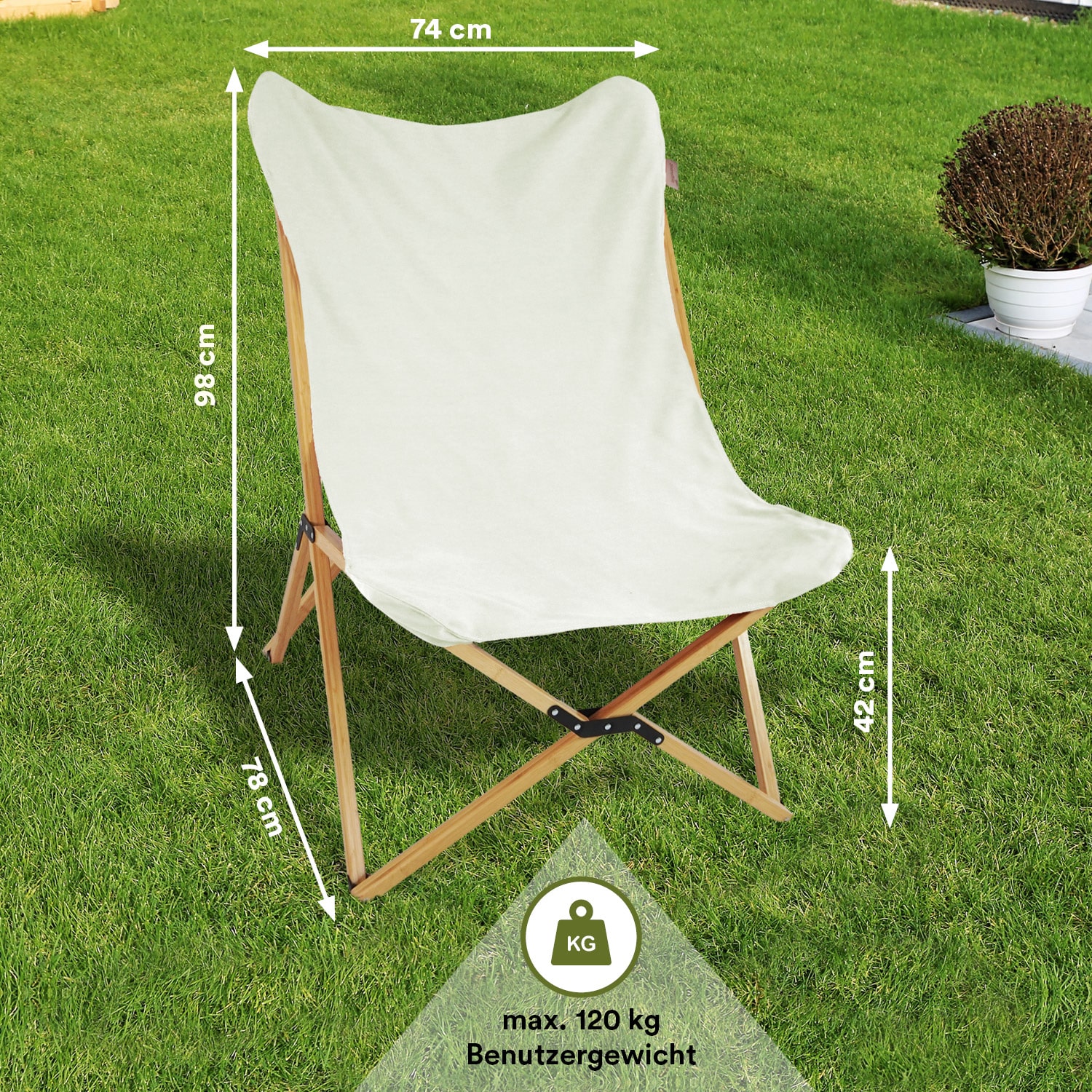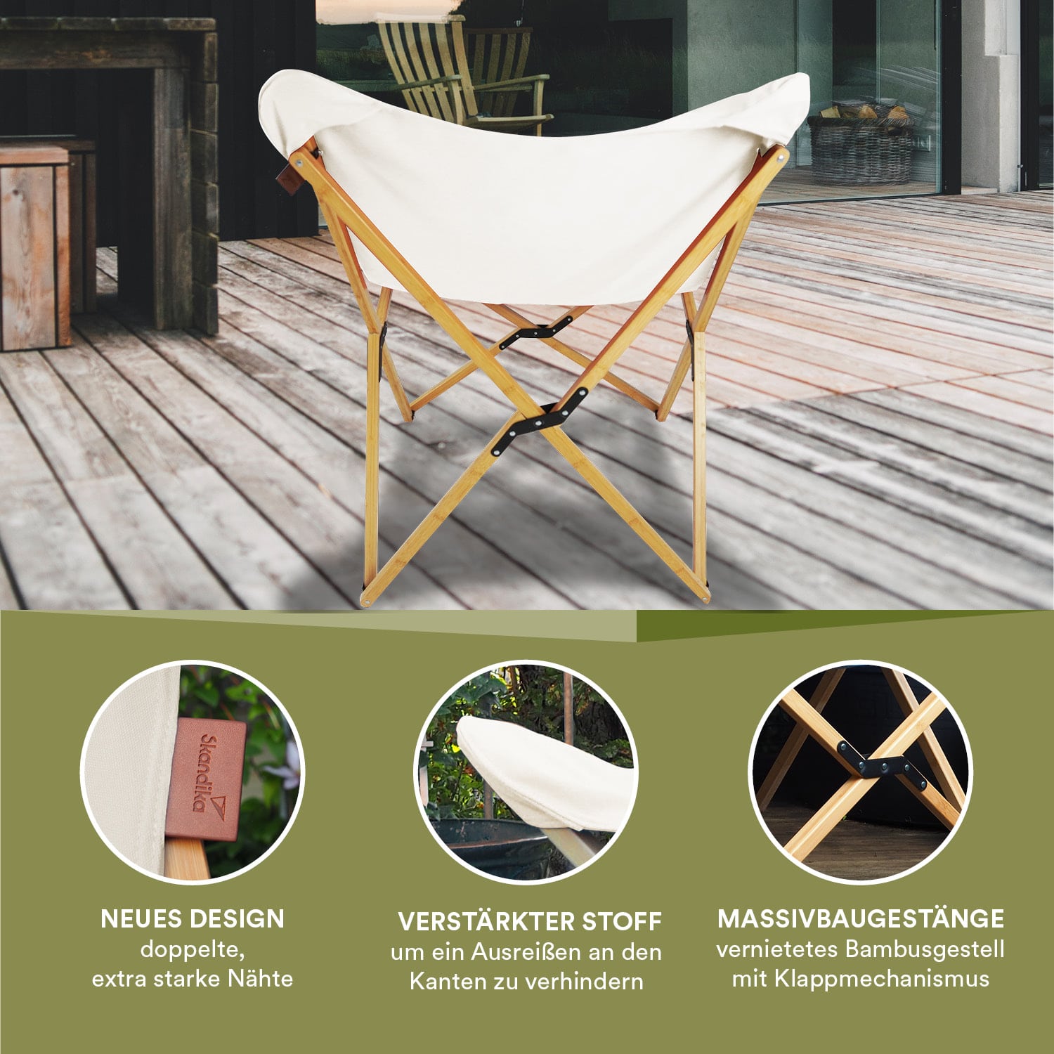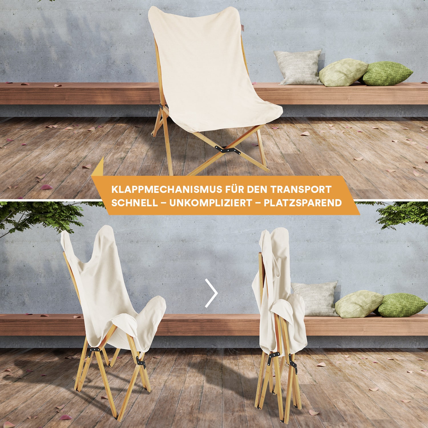 Das Gestell aus reinem Bambus ist sehr stabil und wetterfest, sodass der Stuhl auch dem schlechtesten Wetter trotzen kann.