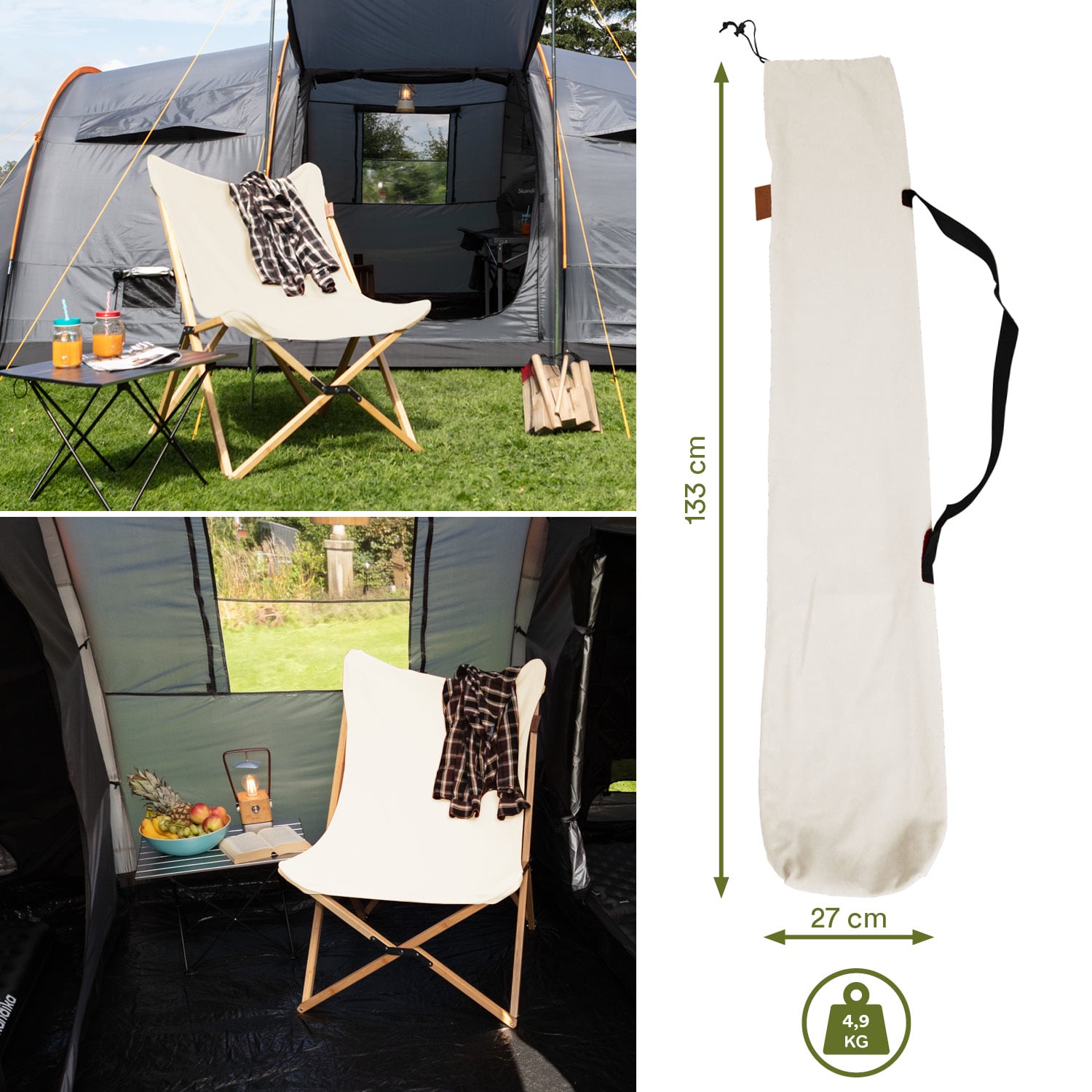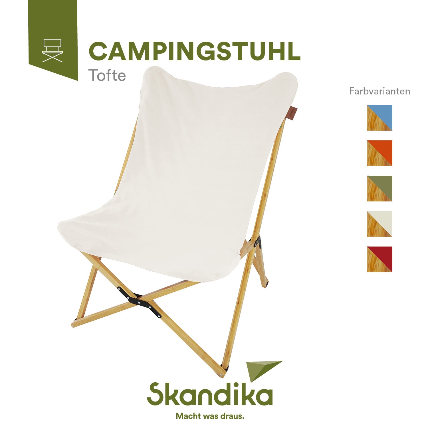 Tofte - Für die ruhigen Momente! Jeder verdient sich zwischendurch eine kleine Pause. Um es besonders gemütlich beim Relaxen im Zelt, am Lagerfeuer oder beim Sonnenbaden zu haben, ist der neue Campingstuhl Tofte genau der Richtige. Durch seine nachhaltigen Materialien wie Bambus und Baumwolle hebt er sich von gewöhnlichen Campingstühlen ab und sticht mit seinem modernen Design direkt ins Auge.