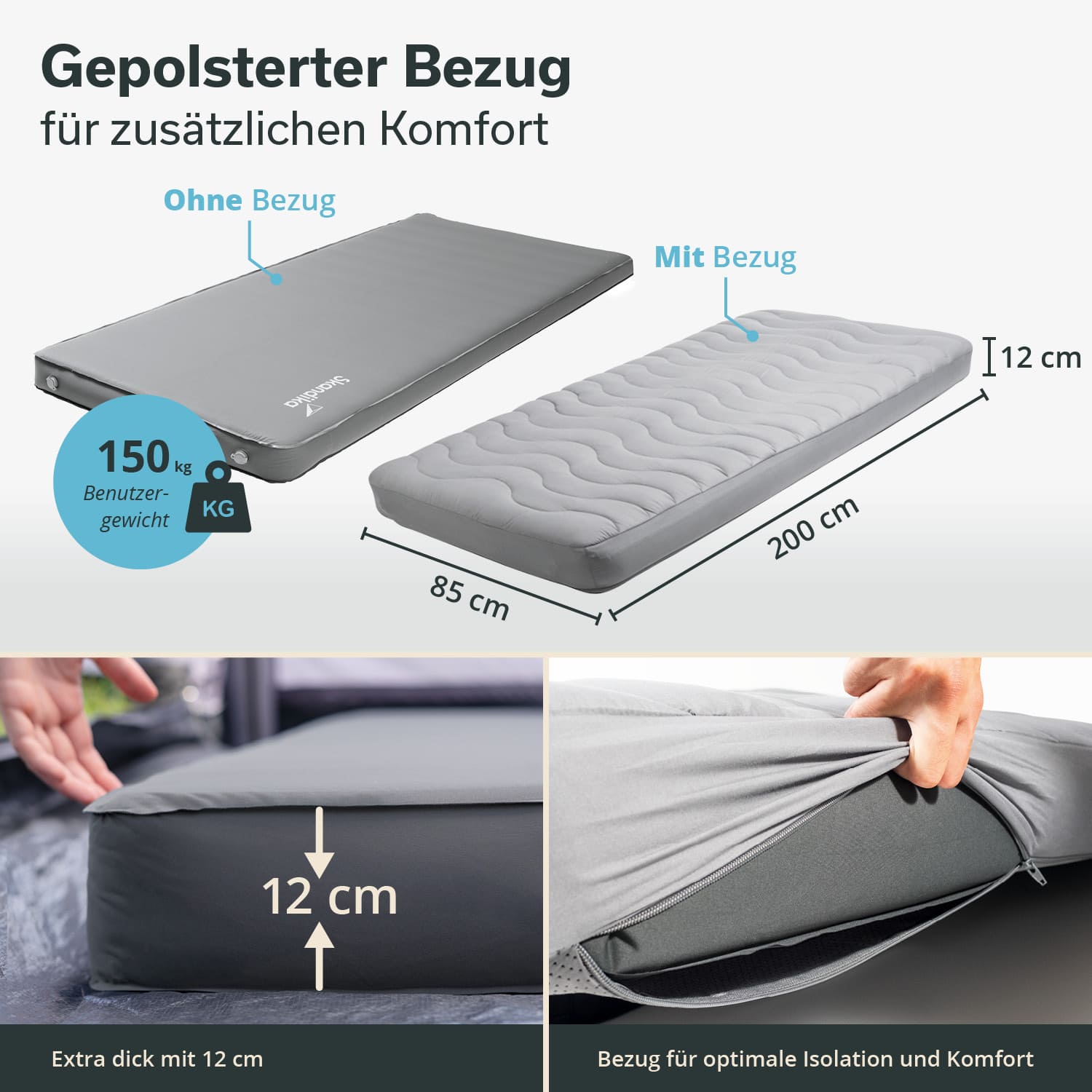 Ideal für verschiedenste Einsatzzwecke: vom Camping in der Wildnis über Übernachtungen im Van bis hin zur Nutzung als komfortables Gästebett zu Hause.