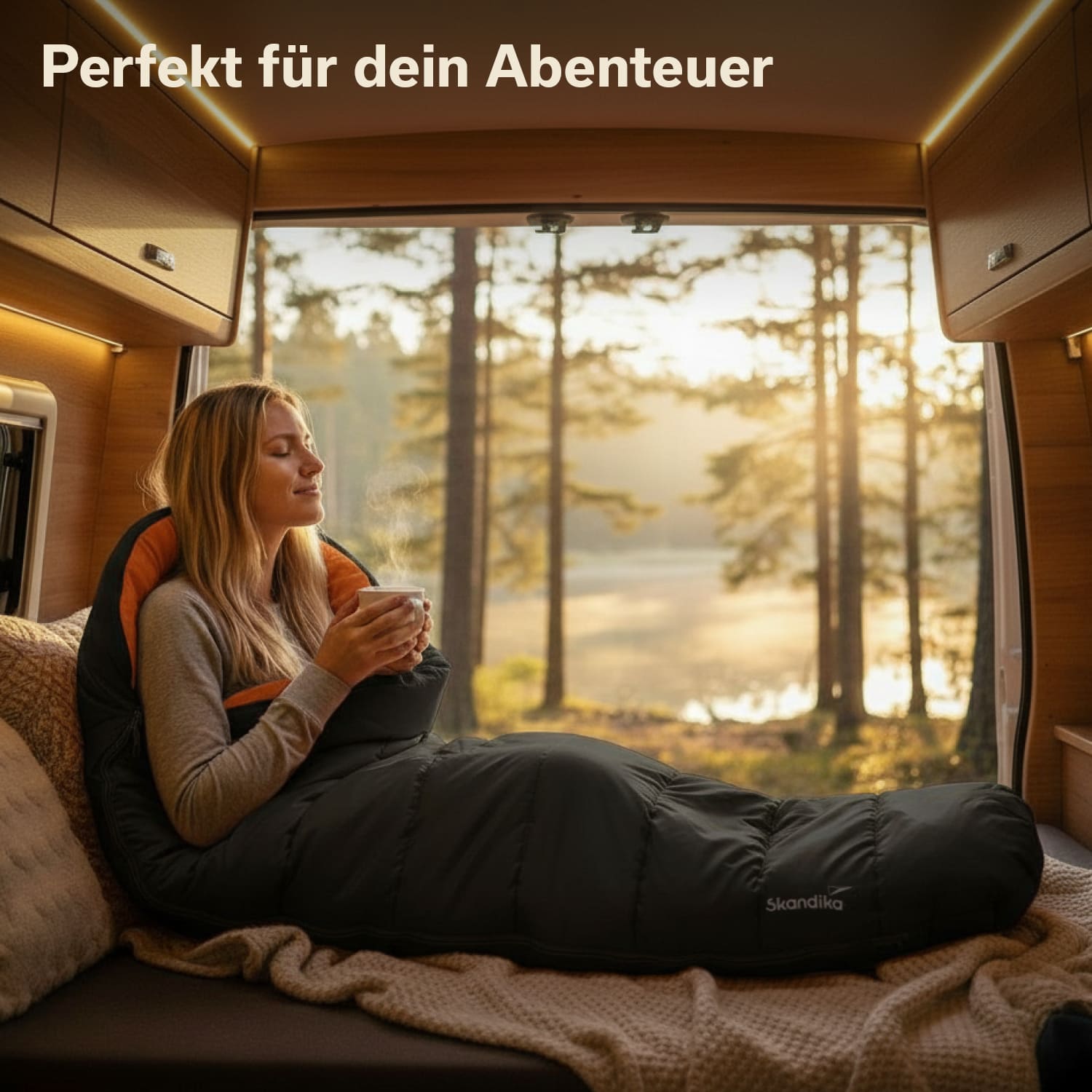 Unser Skandika Schlafsack Vegas in Mumienform und XXL-Größe hat einen besonders geräumigen Schnitt. Er bietet eine Menge an Platz und vor allem unruhige und bewegungslustige Schläfer oder Seitenschläfer finden mit Vegas genau die richtige Schlafumgebung.