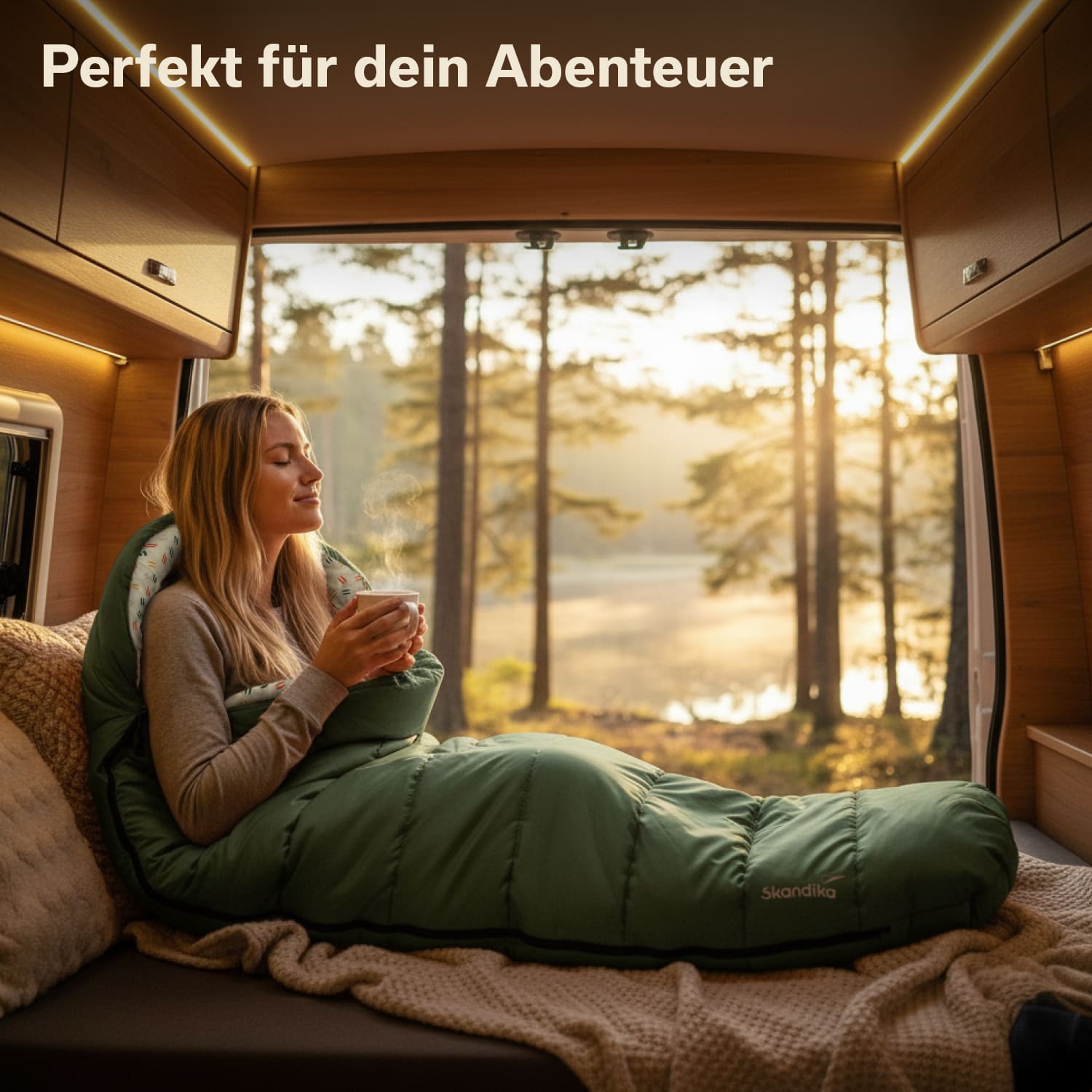 Unser Skandika Schlafsack Vegas in Mumienform und XXL-Größe hat einen besonders geräumigen Schnitt. Er bietet eine Menge an Platz und vor allem unruhige und bewegungslustige Schläfer oder Seitenschläfer finden mit Vegas genau die richtige Schlafumgebung.