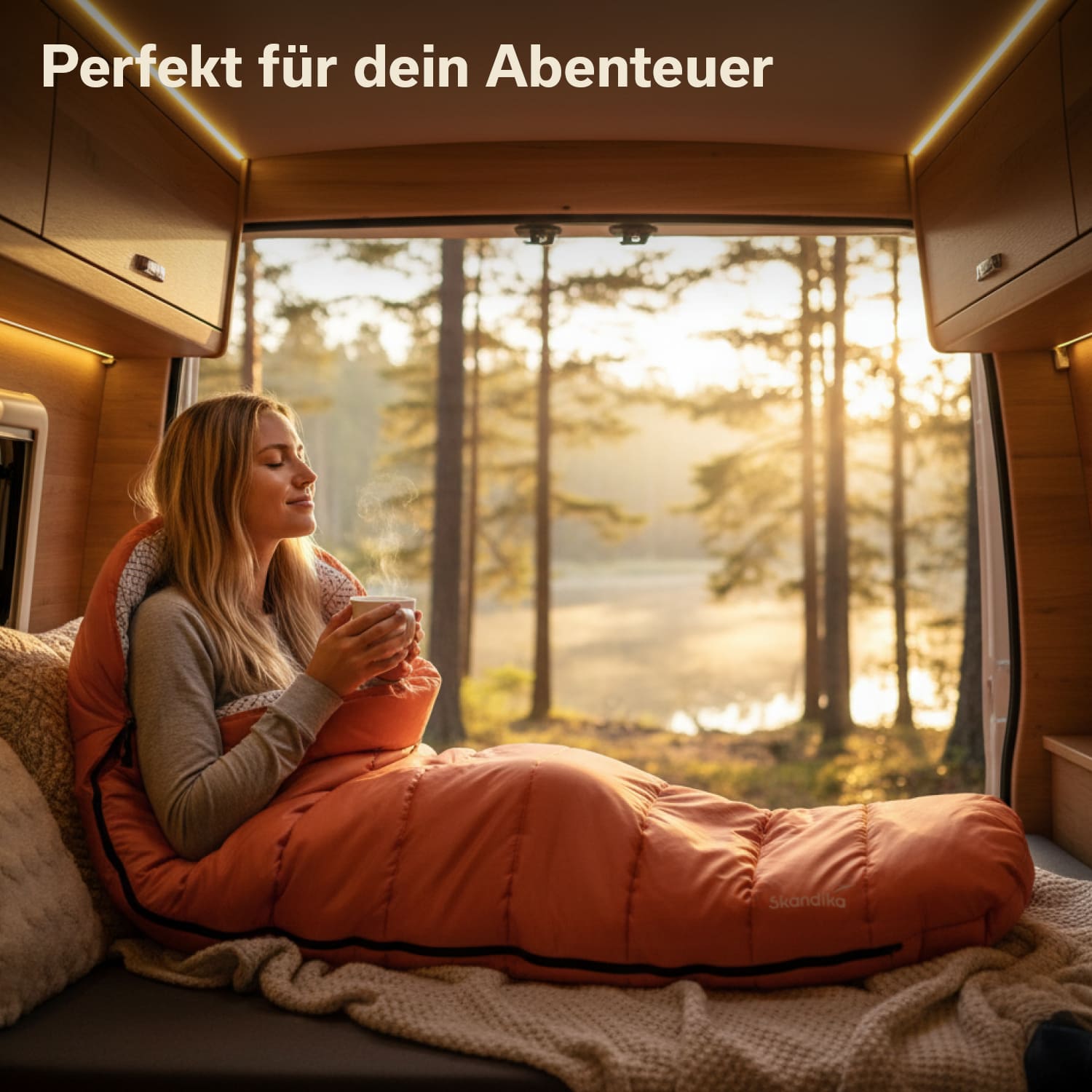 Die große Kapuze hat einen 14 cm hohen Rand mit Kordelzug, um ein komplettes Einkuscheln zu ermöglichen und Kopf und Schultern schön warm zu halten. Im Inneren des Schlafsacks ist eine kleine Aufbewahrungstasche mit Klettverschluss angebracht. Hier kann das Smartphone verstaut werden – besonders praktisch, wenn beim Einschlafen noch ein Podcast oder Musik gehört werden möchte. Die Tasche eignet sich auch zur Aufbewahrung von anderen Gegenständen, wie z. B. Schlüssel oder Taschentücher.