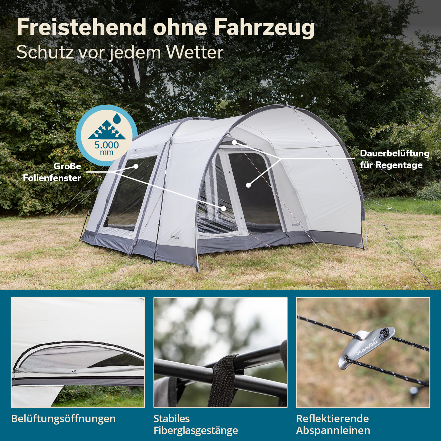 - Wetterfest, 5.000 mm Wassersäule, UV-Schutz 50+, bruchsicheres Fiberglasgestänge