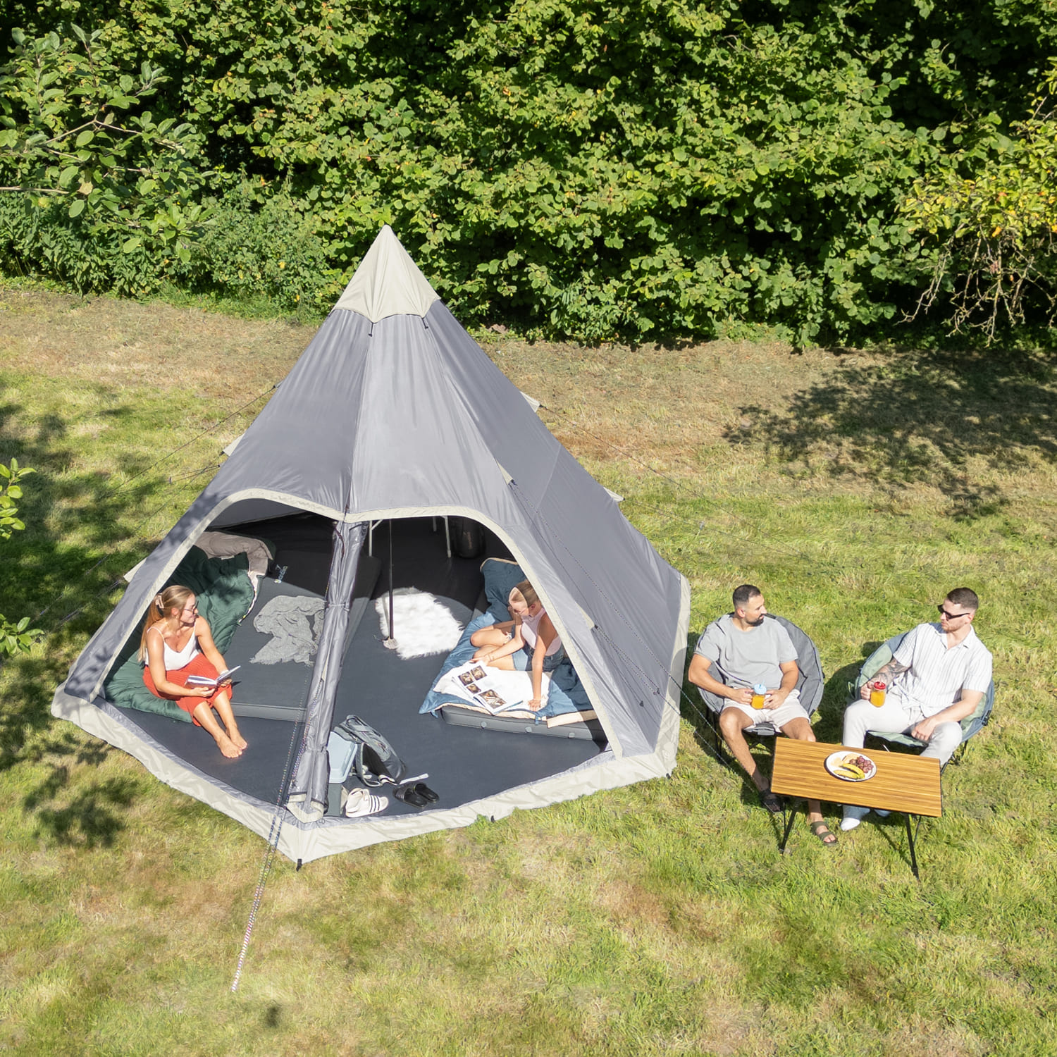 Das Hetta Tipi eignet sich nicht nur für Glamping zu zweit und für Familien und Freunde, die einen Urlaub zusammen verbringen möchten. Das beindruckende Ureinwohnerzelt ist ebenso für das nächste Musik-Festival oder als Übernachtungs- und Partymöglichkeit für besondere Anlässe im Garten die perfekte Wahl.