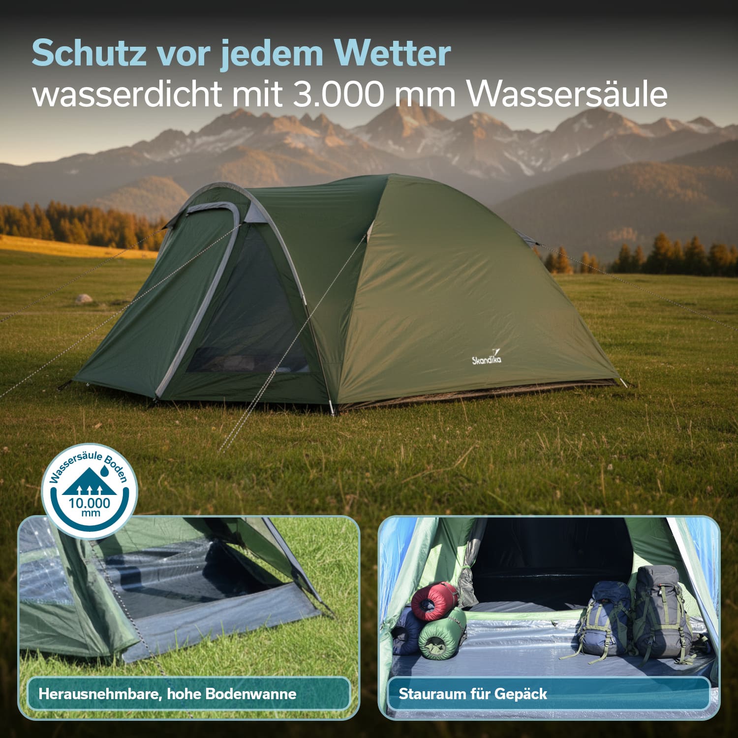 Kuppelzelte sind gerade bei Campingneulingen besonders beliebt, denn sie stehen nicht nur bei starkem Wind stabil, sondern sind ebenfalls extrem schnell und einfach im Aufbau. Das Skandika Larvik 3 Sleeper bildet hier keine Ausnahme. Kompakt und dennoch großzügig geschnitten, ist das Kuppelzelt für Outdoor-Abenteuer aller Art bestens geeignet.