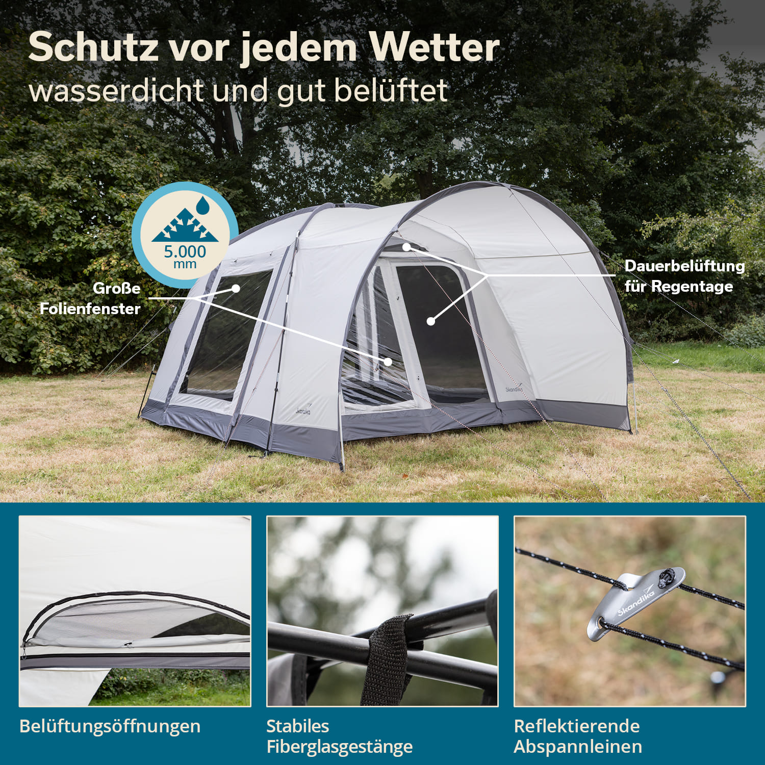 - Wetterfest, 5.000 mm Wassersäule, UV-Schutz 50+, bruchsicheres Fiberglasgestänge