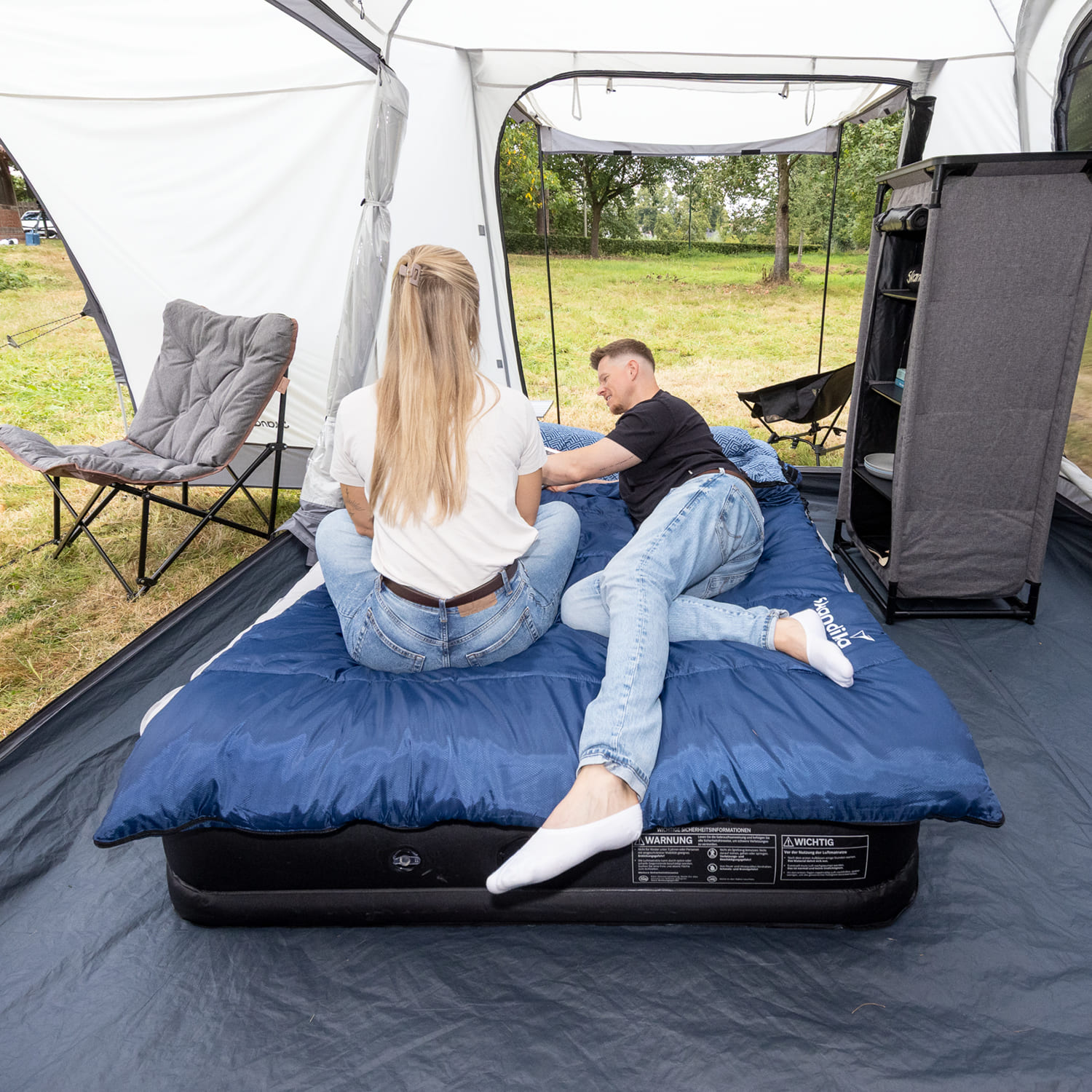 Der Zeltstoff hat einen UV-Schutzfaktor 50+ und bewahrt das Zelt davor, durch intensive Sonneneinstrahlung spröde oder rissig zu werden. Das Zelt wird langlebiger, heizt sich nicht so schnell auf und ein angenehmes Zeltinnenklima wird begünstigt.