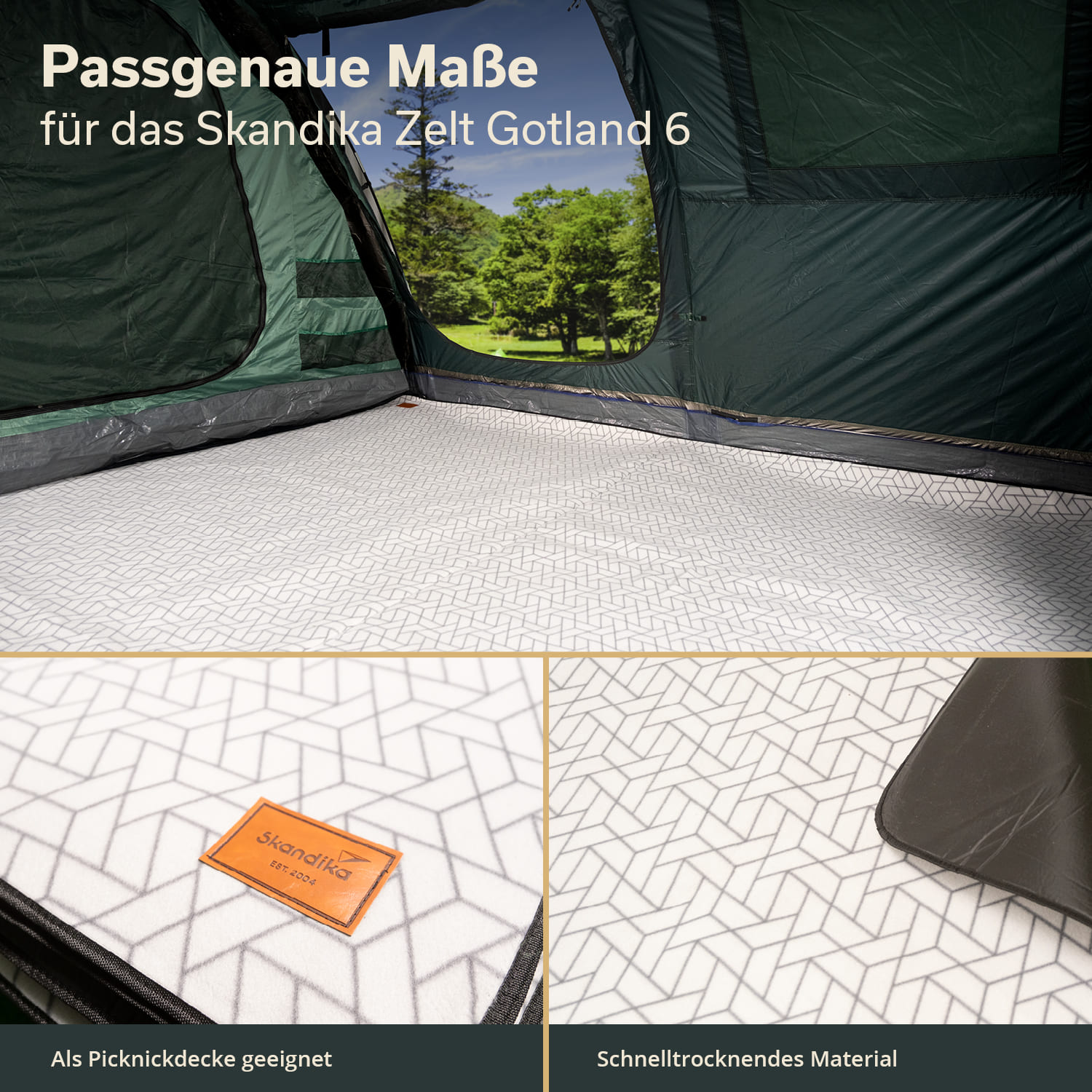 - Mit Aussparungen passend für den Wohnbereich des Skandika Gotland 6 Zeltes