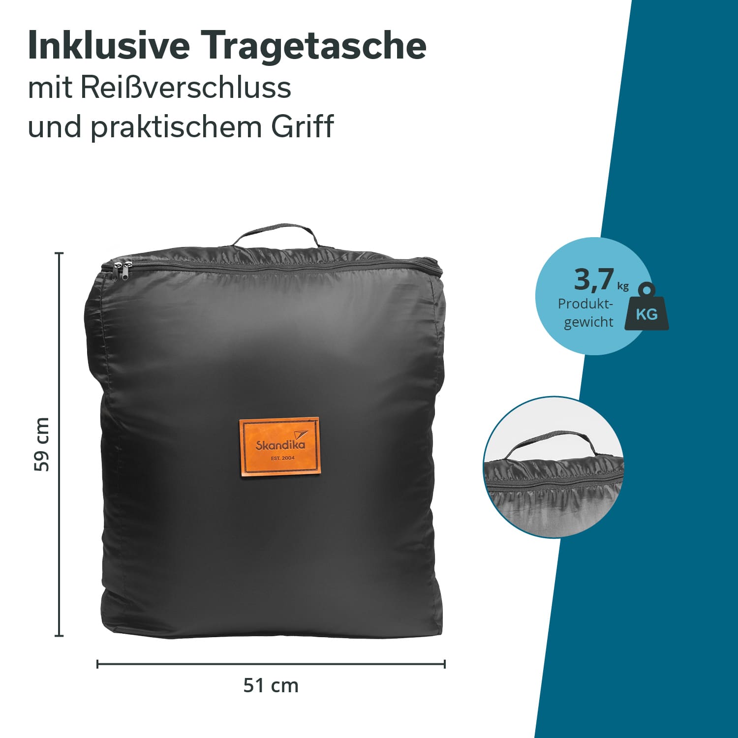 - Tragetasche mit Reißverschluss für den Transport und die Aufbewahrung
