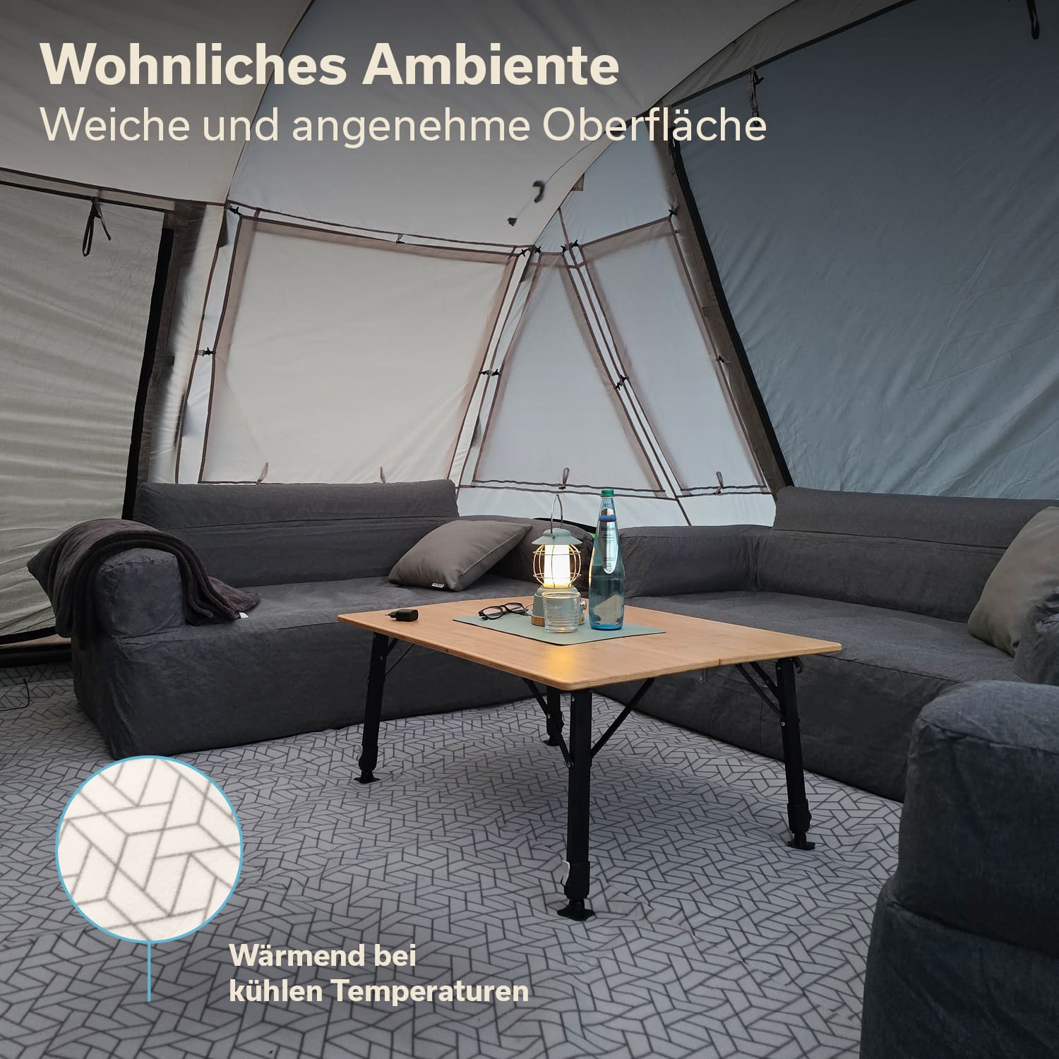 - Teppich mit Softtouch-Fleece-Oberfläche für Wärme und Komfort im Zelt
