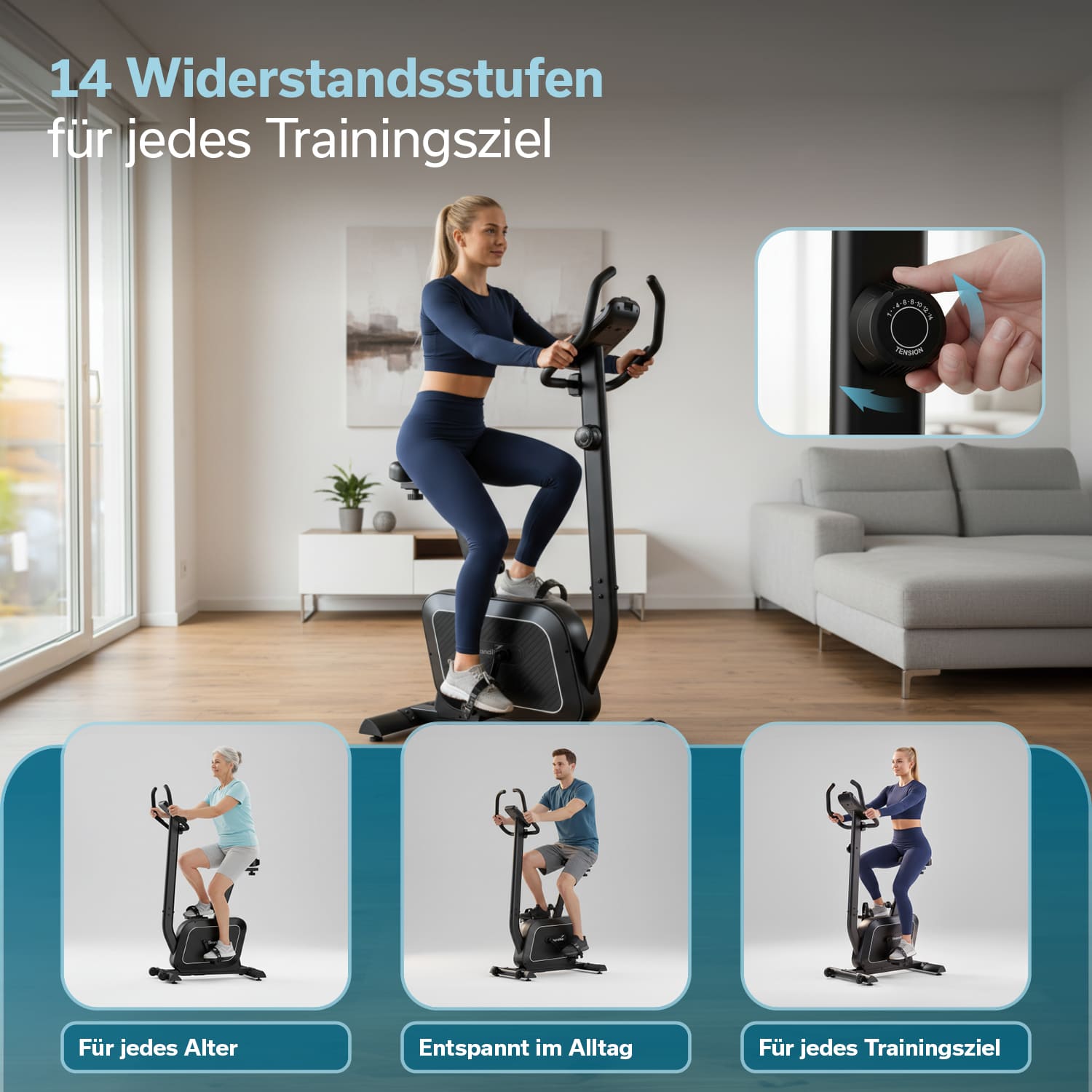 - Wartungsarmes Magnetbremssystem mit 14 manuell einstellbaren Widerstandsstufen