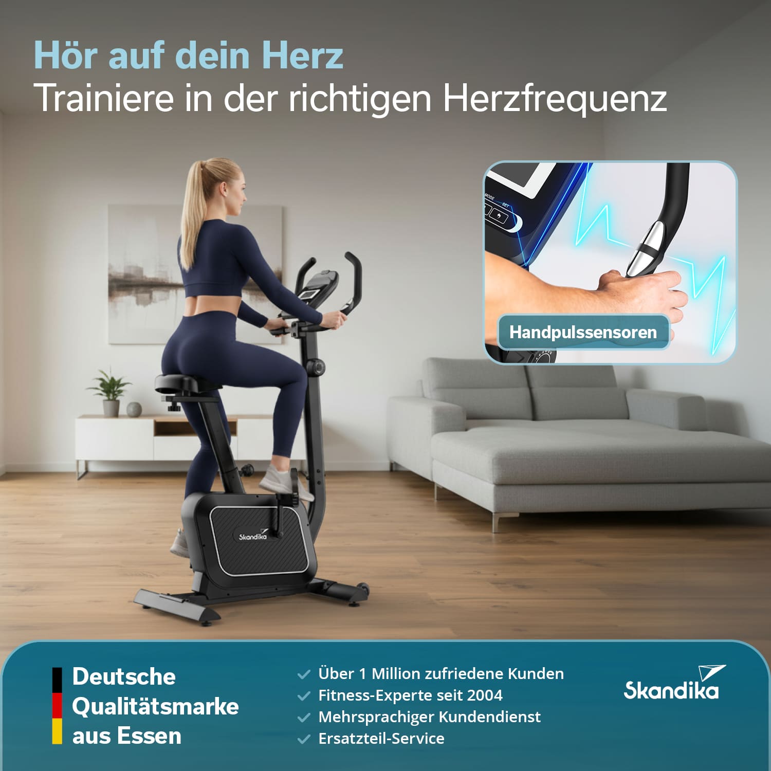 - Mit bequemem Sattel, rutschfesten Pedalen und integrierten Handpulssensoren