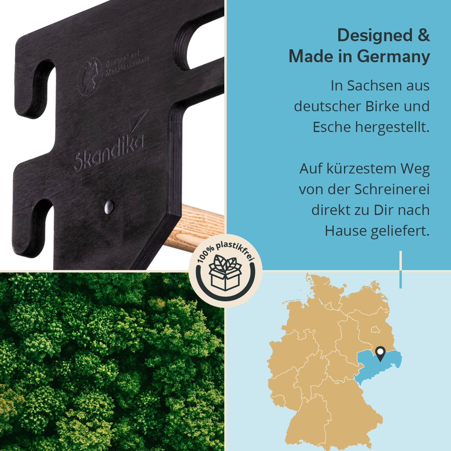 - Gefertigt in deutscher Schreinerei mit Eschen- und Birkenholz aus regionaler Forstwirtschaft