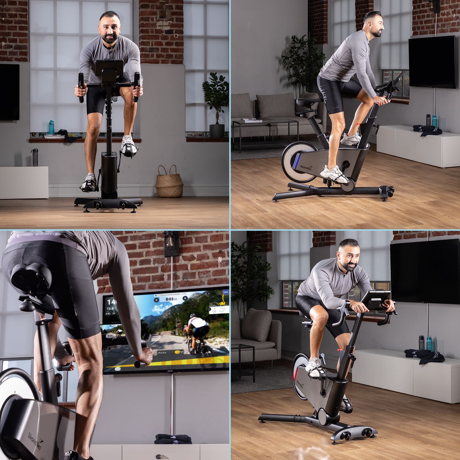 Das Skandika Speedbike Kliva 800-S überzeugt mit bis zu 800 Watt Trainingsleistung und hebt Indoor-Cycling auf ein völlig neues Level. Das Besondere: Dieses smarte Speedbike simuliert Steigungen und Gefälle nicht nur virtuell über den Widerstand, sondern bewegt sich auch tatsächlich. Der integrierte Steigungsmotor neigt das gesamte Bike vor und zurück und schafft damit ein authentisches Fahrgefühl, das dem echten Rennradtraining auf der Straße so nah kommt wie bei kaum einem anderen Indoor-Bike.