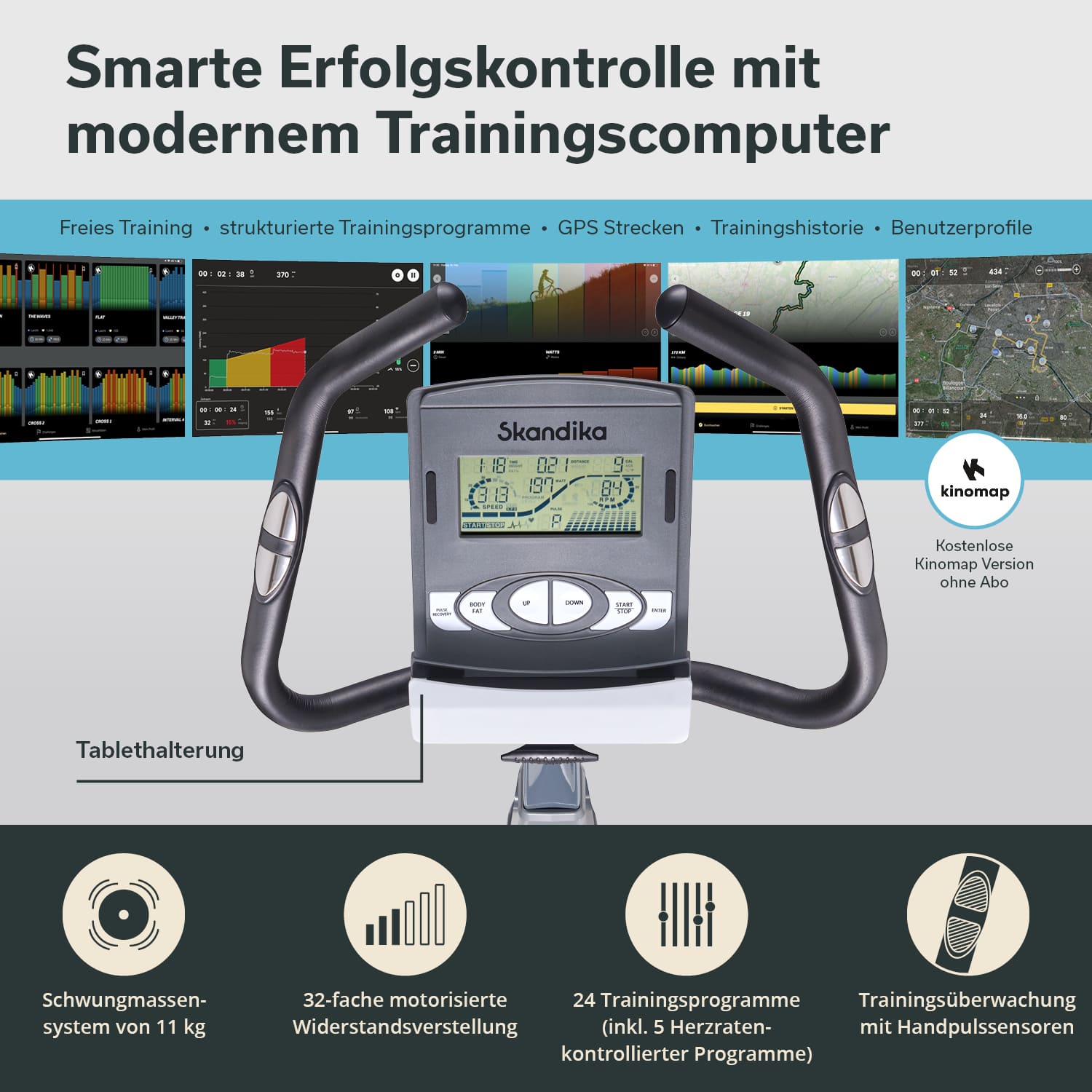 Der leicht zu bedienende Computer mit großem LCD-Display zeigt alle relevanten Daten auf einem Blick: Zeit, Geschwindigkeit, Entfernung, U/Min, Kalorien, Puls, Körperfett und Erholungspuls. 24 Trainingsprogramme bedeuten hervorragende Workout-Möglichkeiten für Anfänger sowie für Fortgeschrittene.