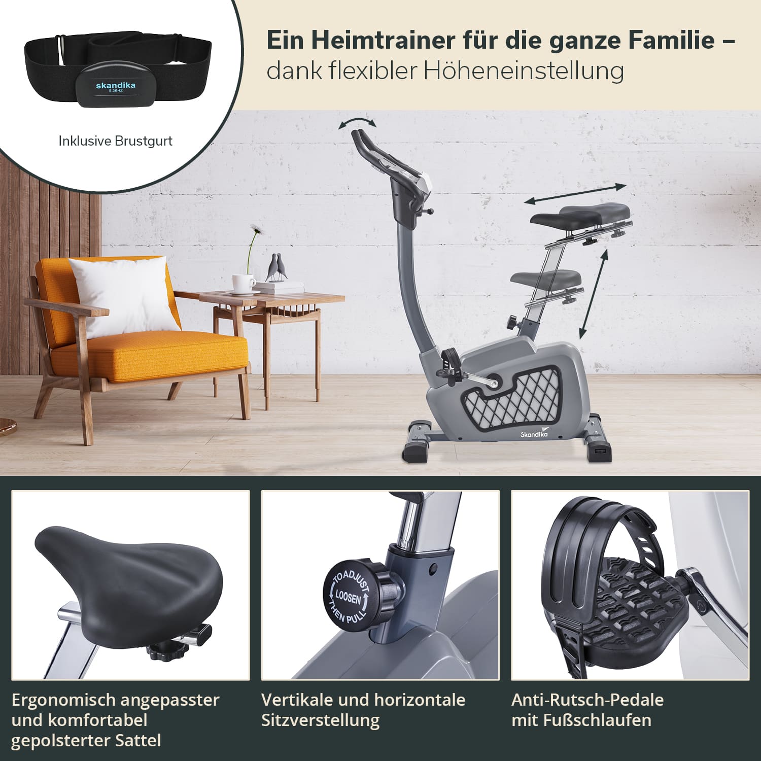 Ein Ergometer/Heimtrainer zum Verlieben. Nachbarschaftsfreundlich leise, optimal ausgestattet und skandinavisch puristisches Design machen den Skandika Wiry zum Alleskönner in seiner Klasse. Das Bike kommt in einem handlichen Paket und ist in nur wenigen Handgriffen einsatzbereit für das Training in den eigenen vier Wänden.