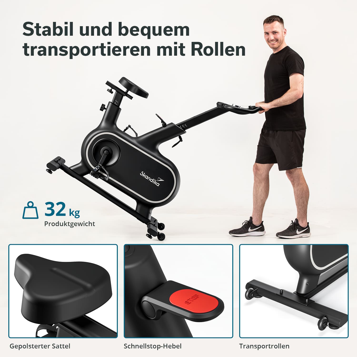 Das Skandika Cykling P12-H kombiniert die dynamische Funktionalität eines Speedbikes mit der Ästhetik eines modernen Heimtrainers. Die klare Linienführung und das mattschwarze Design machen das Gerät zu einem optischen Highlight in jedem Raum und verleihen Workouts eine besonders stilvolle Note.
