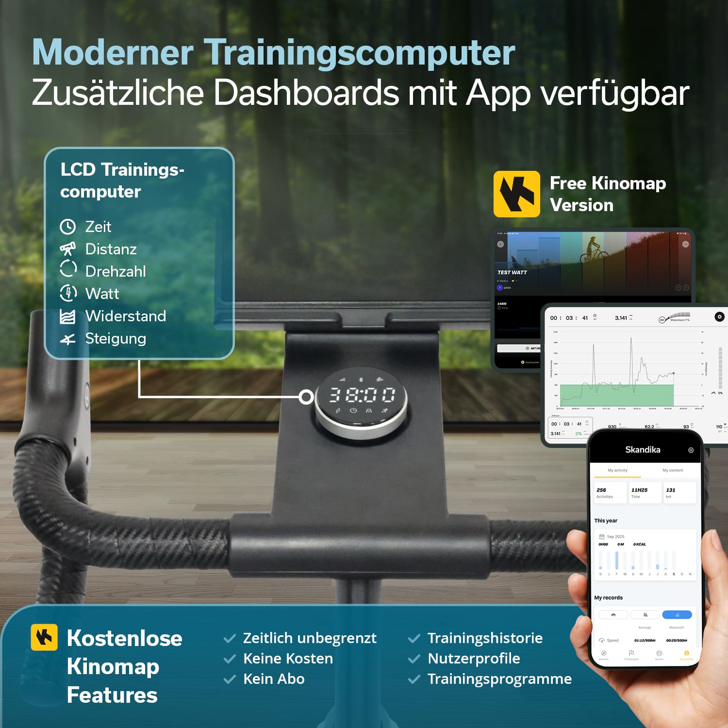 • Bluetooth-Anbindung und Kinomap-Kompatibilität mit 30 Tagen kostenfreiem Vollzugang