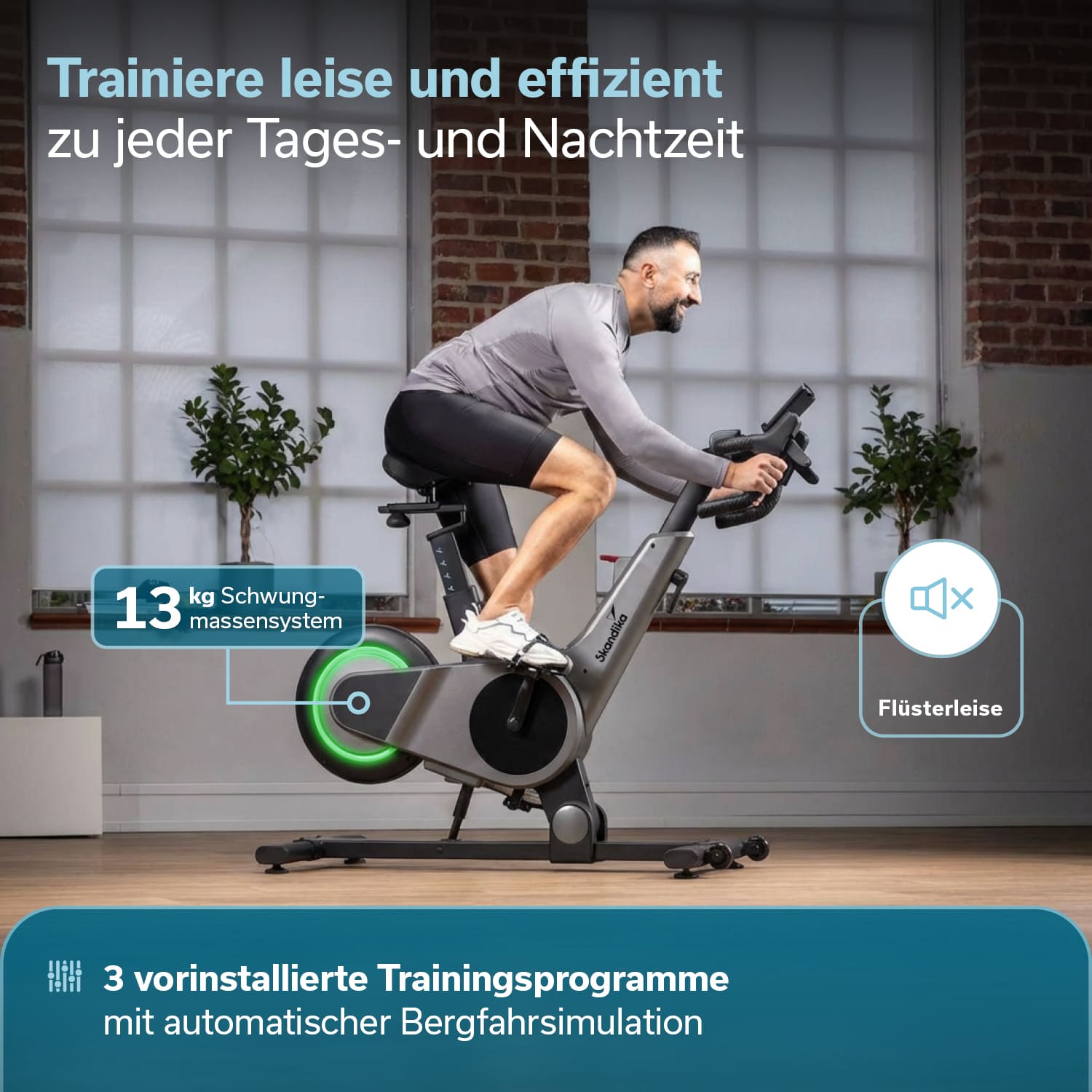 • 13 kg Schwungmassensystem in hinterer Position für optimale Gewichtsverteilung und ruhigen Lauf