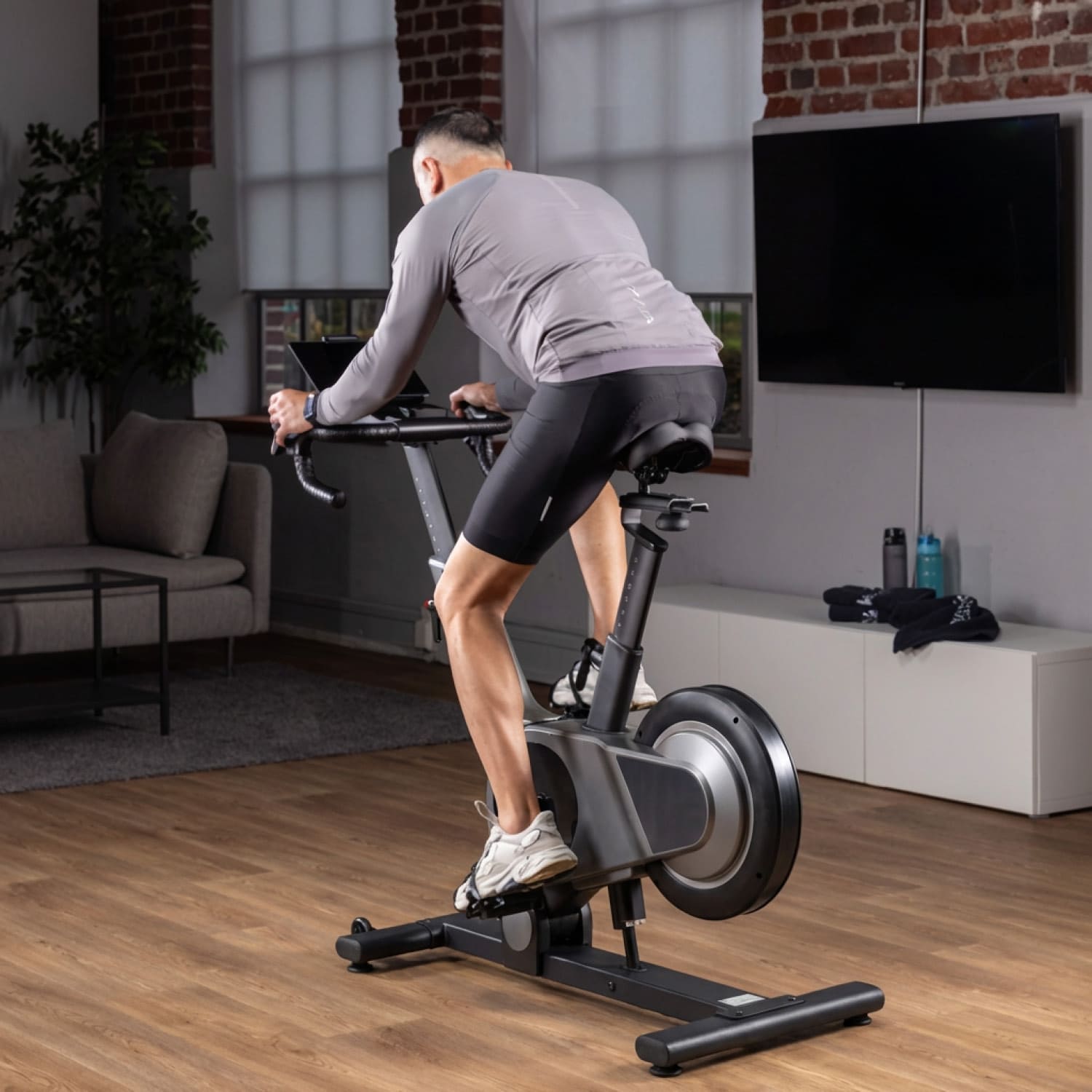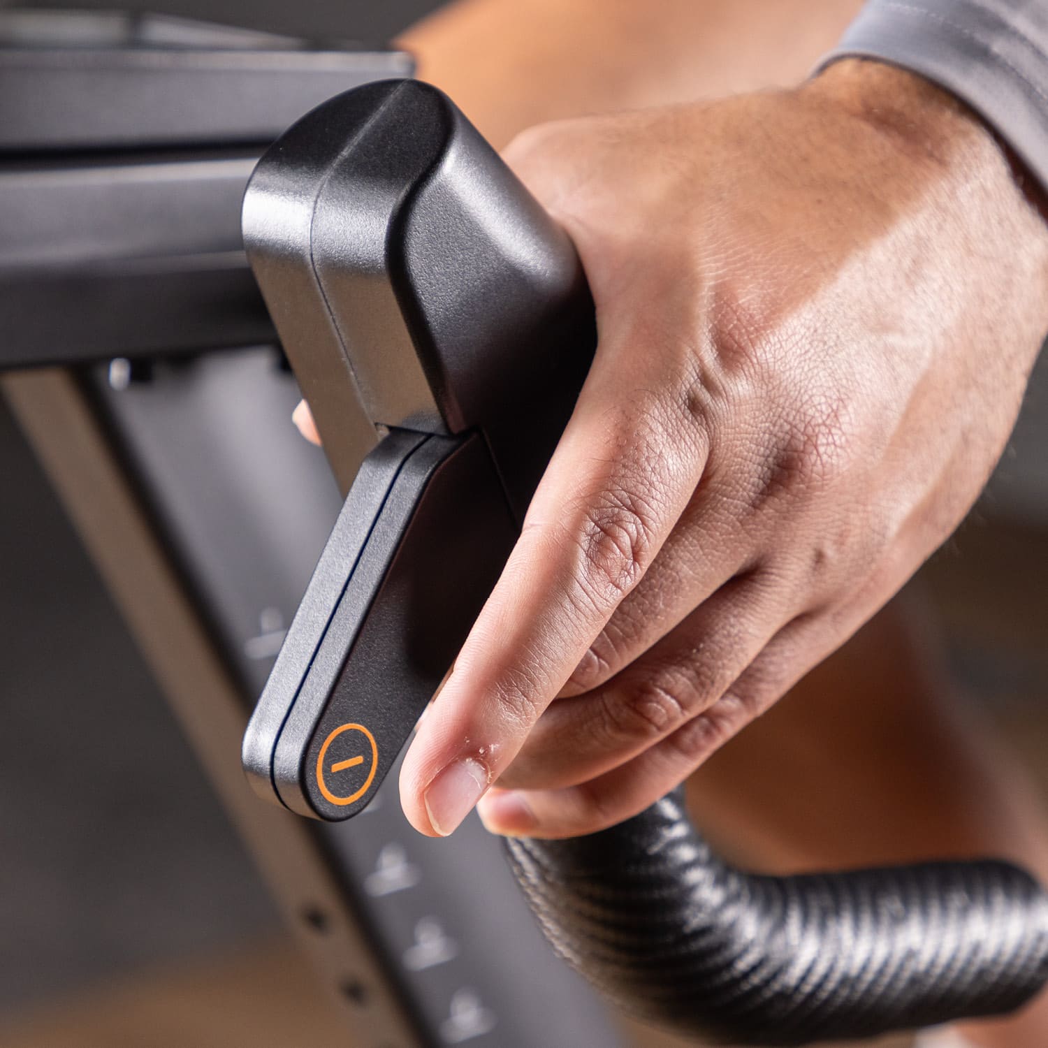 • Motorisierte Steigungsfunktion mit 16 Stufen von -10,5 % bis +9,6 % für authentisches Rennrad-Feeling