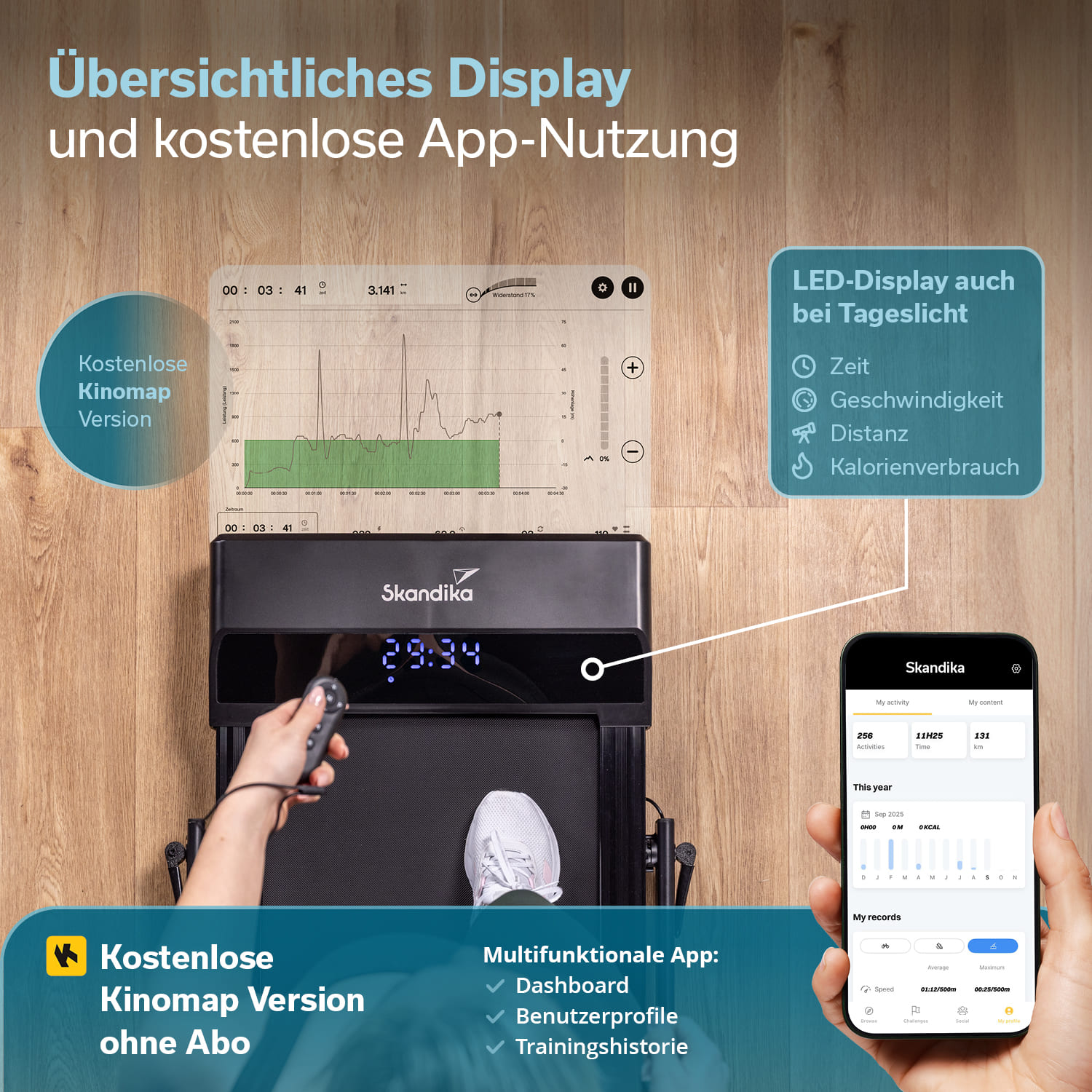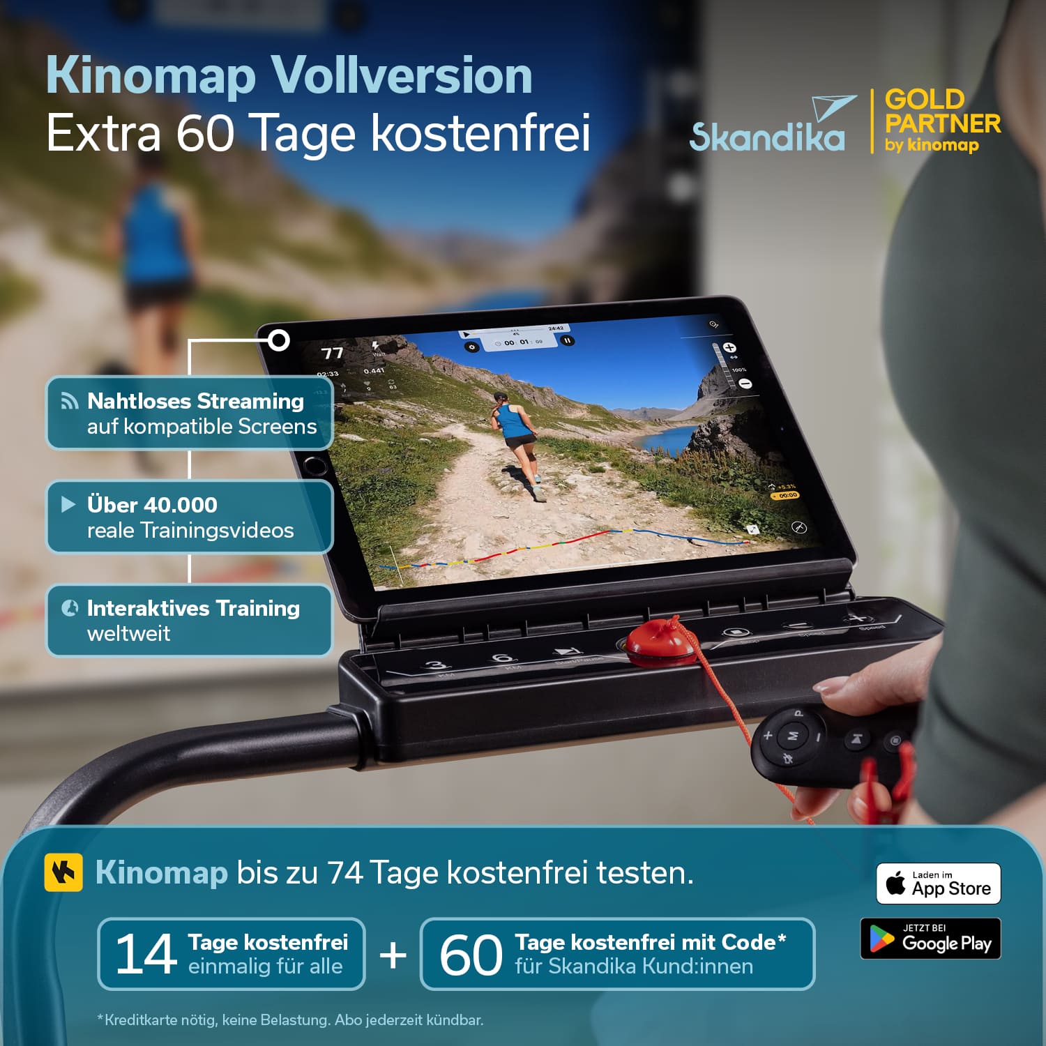 Skandika-Kunden erhalten durch die Gold-Partnerschaft mit Kinomap einen Code, um 60 Tage kostenfrei die Vollversion der Kinomap-App zu testen