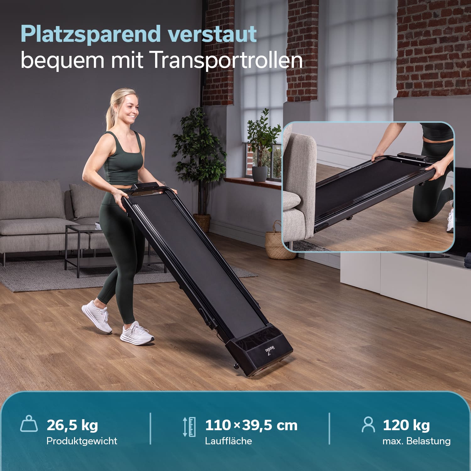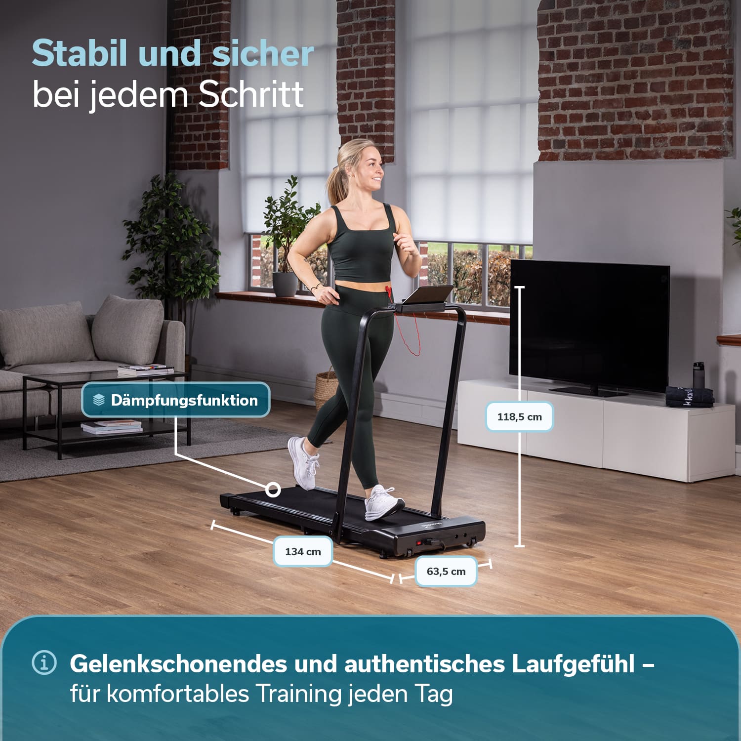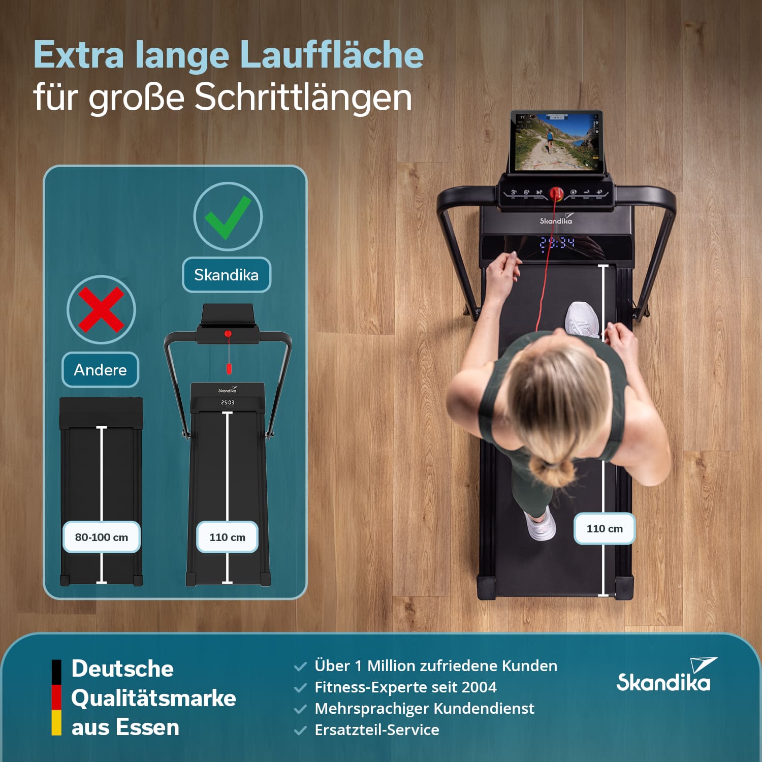 - Extra große Lauffläche (110 x 39,5 cm) für komfortables und sicheres Training