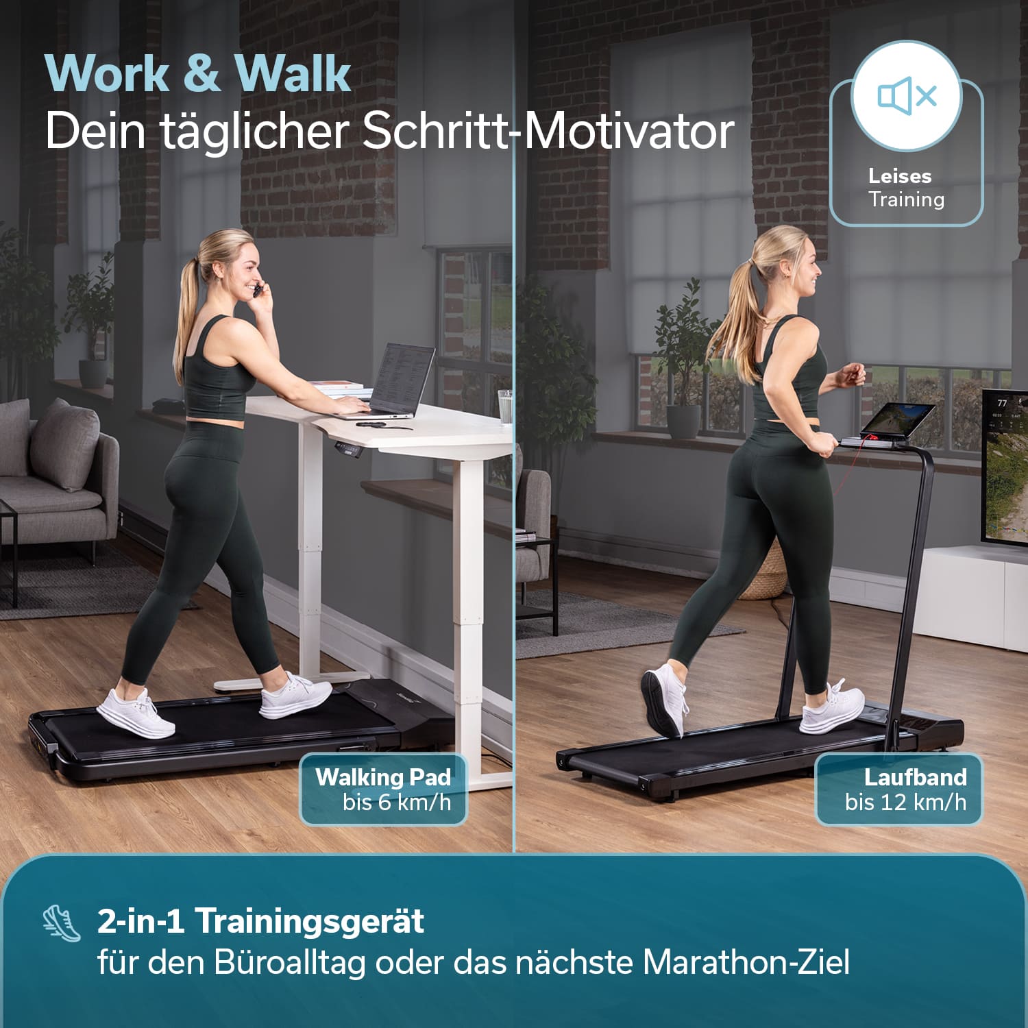 - 2-in-1 Walking Pad mit Laufbandfunktion für flexibles Training im Büro oder zuhause