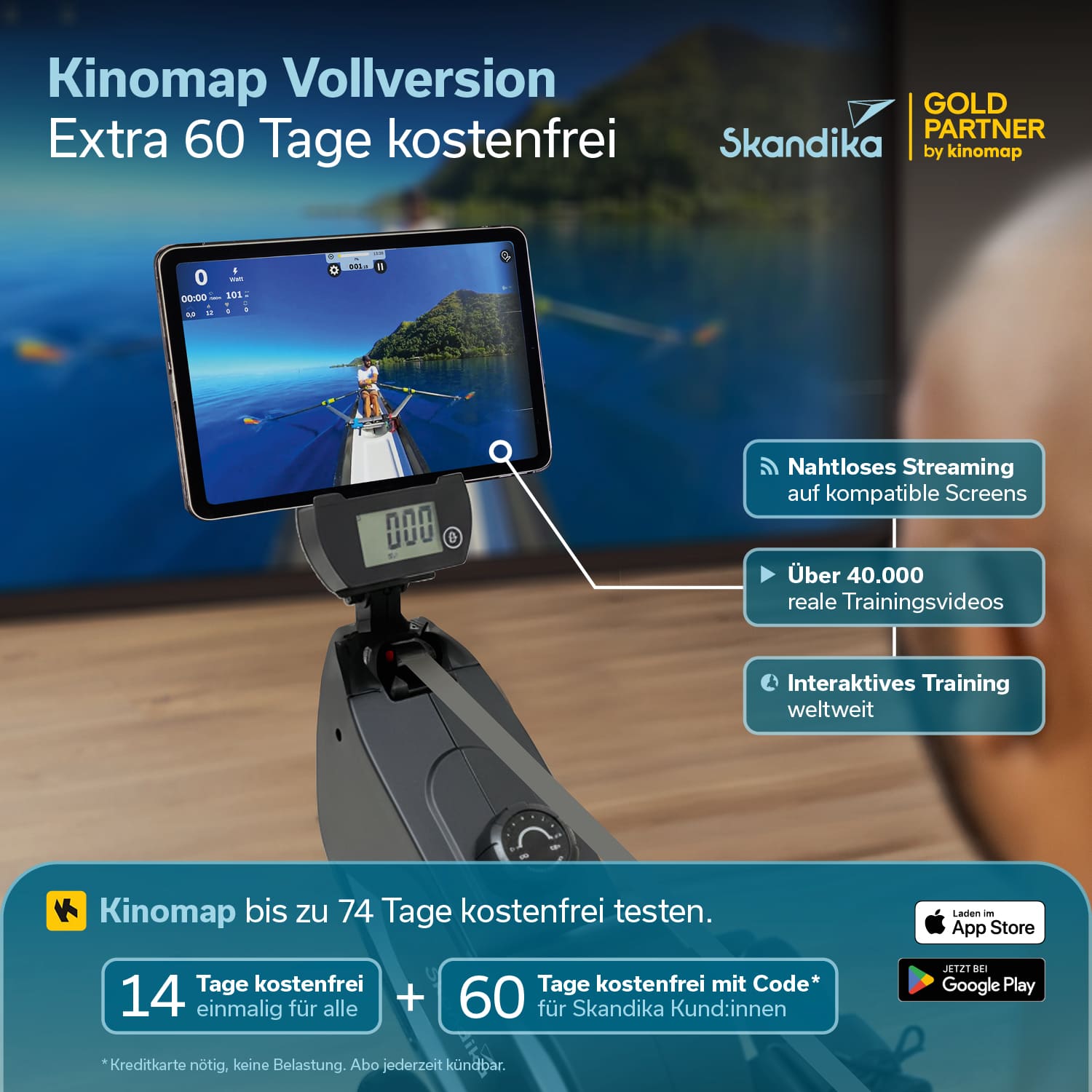 Skandika-Kunden erhalten durch die Gold-Partnerschaft mit Kinomap einen Code, um 60 Tage kostenfrei die Vollversion der Kinomap-App zu testen.