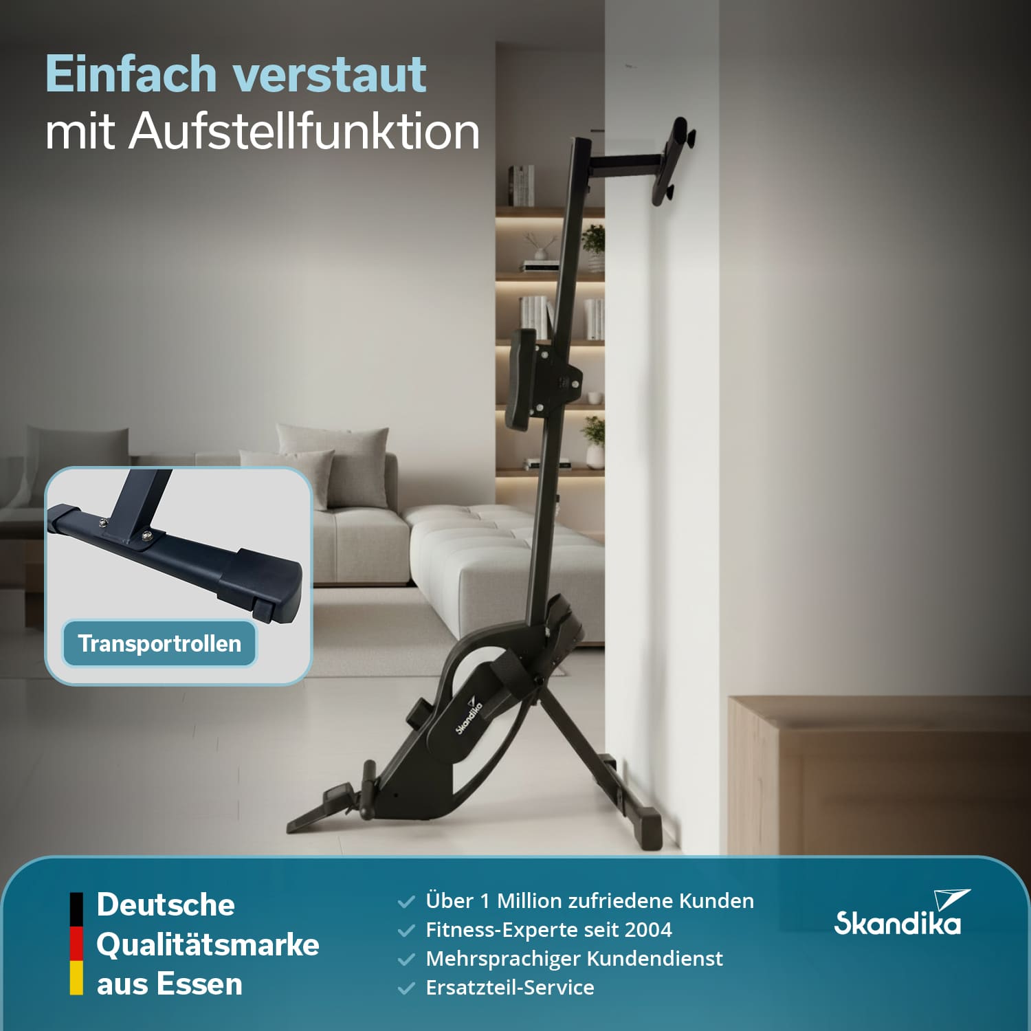 - Transportrollen & Aufstellfunktion für leichtes Verschieben und platzsparendes Verstauen