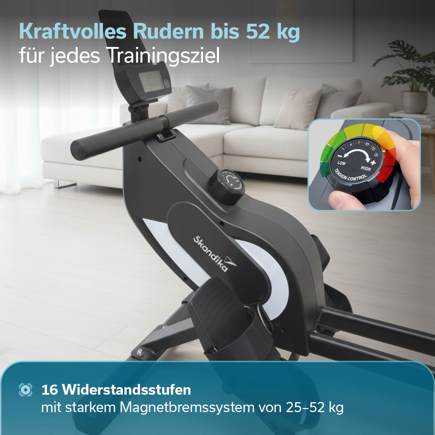- Kraftvolles Magnetbremssystem mit 16-stufigem Widerstand von mind. 25 bis max. 52 kg