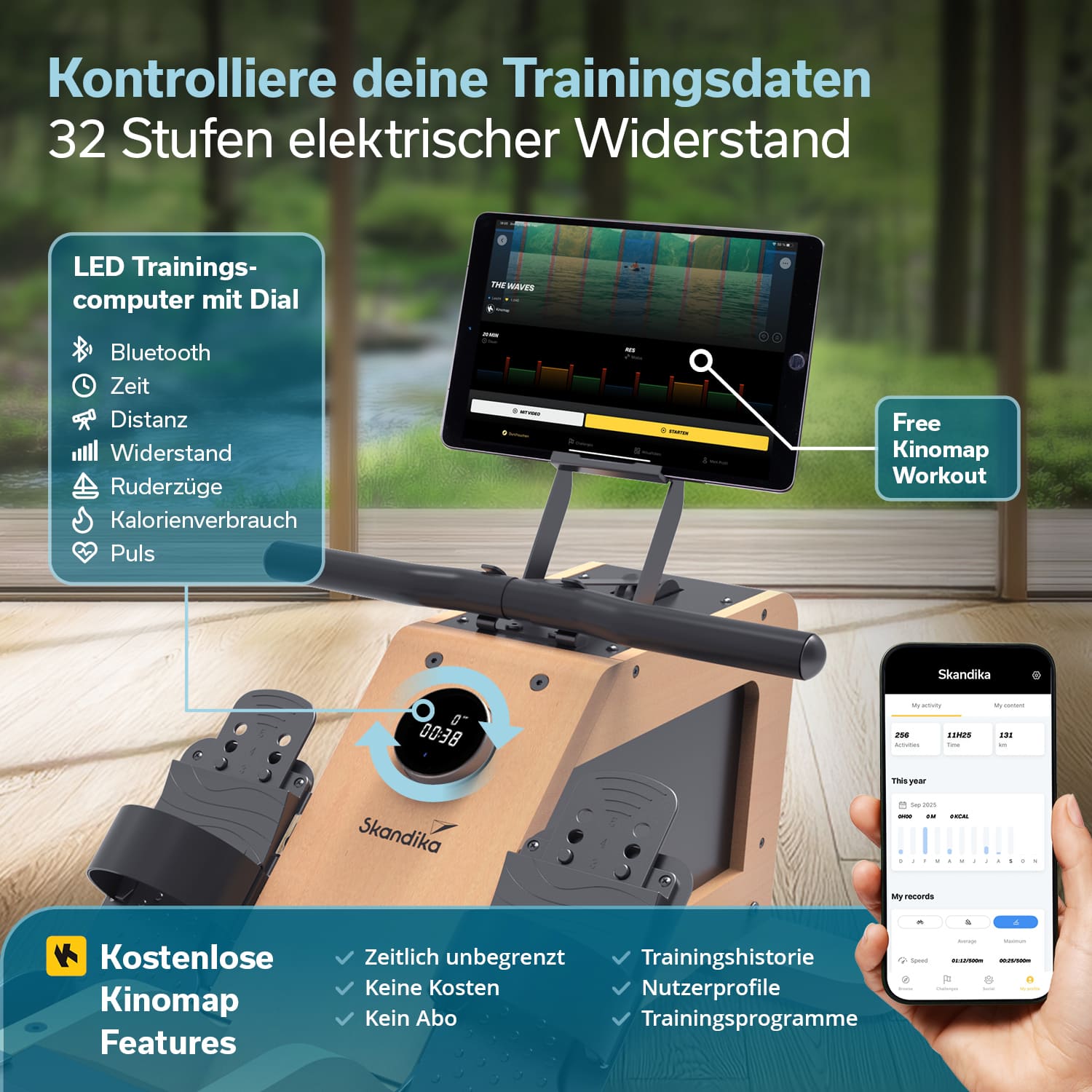 Skandika-Kunden profitieren von der Gold-Partnerschaft mit Kinomap und erhalten einen Code für 30 Tage kostenfreie Vollversion der App. Live-Videos, Coachings und virtuelle Trainingsvideos bringen jede Trainingseinheit auf ein neues Level und ermöglichen Workouts an den schönsten Orten der Welt. Kinomap passt den Widerstand automatisch an für ein authentisches Rudergefühl.