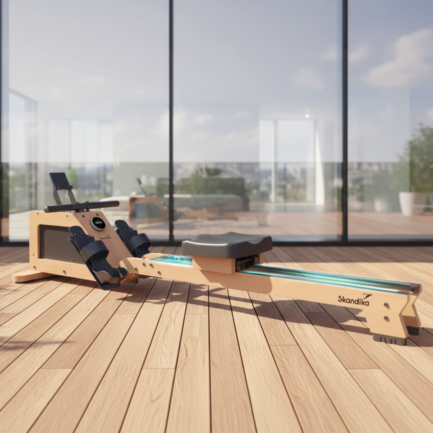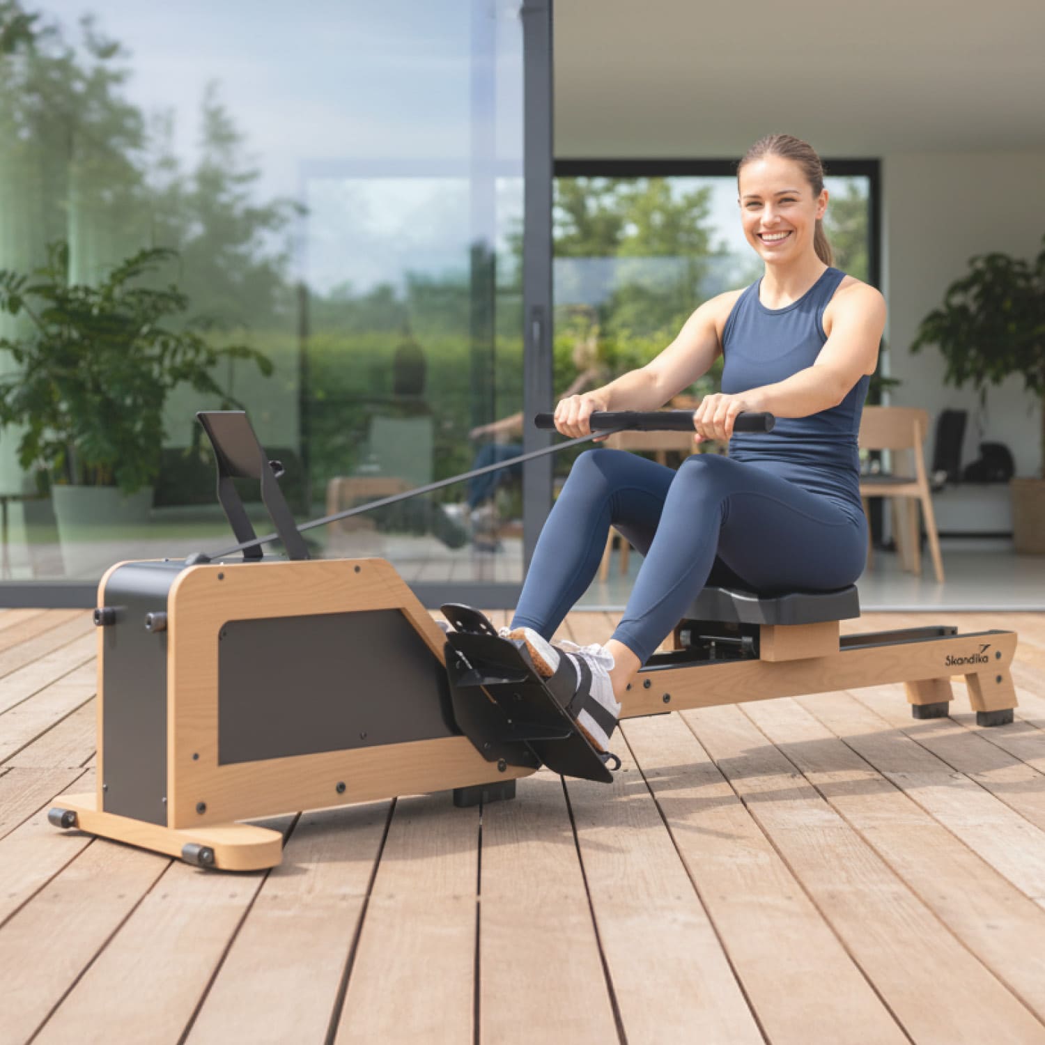 Das Skandika Torin P6-G verbindet modernste Technologie mit natürlicher Ästhetik und setzt neue Maßstäbe für das Training zu Hause. Das Rudergerät aus massivem Buchenholz überzeugt durch seine selbstgenerierende Energieversorgung, die vollkommen unabhängig von einer Steckdose auskommt. Die innovative Doppellaufschiene sorgt für flüssige Bewegungsabläufe und maximale Stabilität, und doch bleibt das Trainingsgerät erstaunlich leicht und kompakt. Mit der vertikalen Aufstellfunktion ist es besonders für kleinere Wohnungen attraktiv, und die zeitlose Designkombination aus heller Buche und schwarzen Komponenten bringt Eleganz in jede Wohnumgebung.