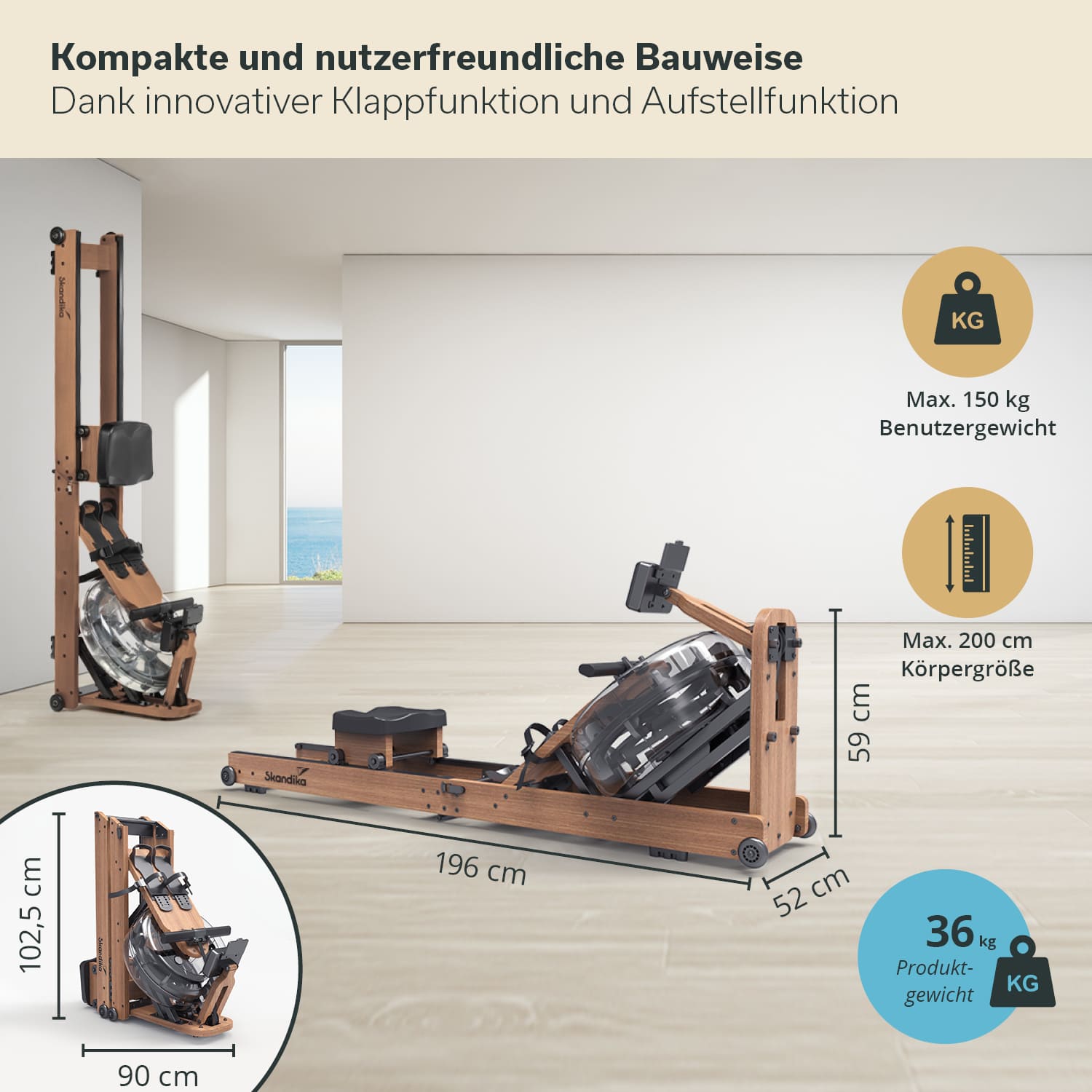 Das Nytta besticht nicht nur durch seine praktischen Funktionen, sondern auch durch das wunderschöne Holzmaterial. Aus dem europäischen Buchenholz gefertigt, schmückt das Rudergerät jeden Raum – ob ein voll ausgestatteter Sportkeller oder das gewöhnliche Wohnzimmer.